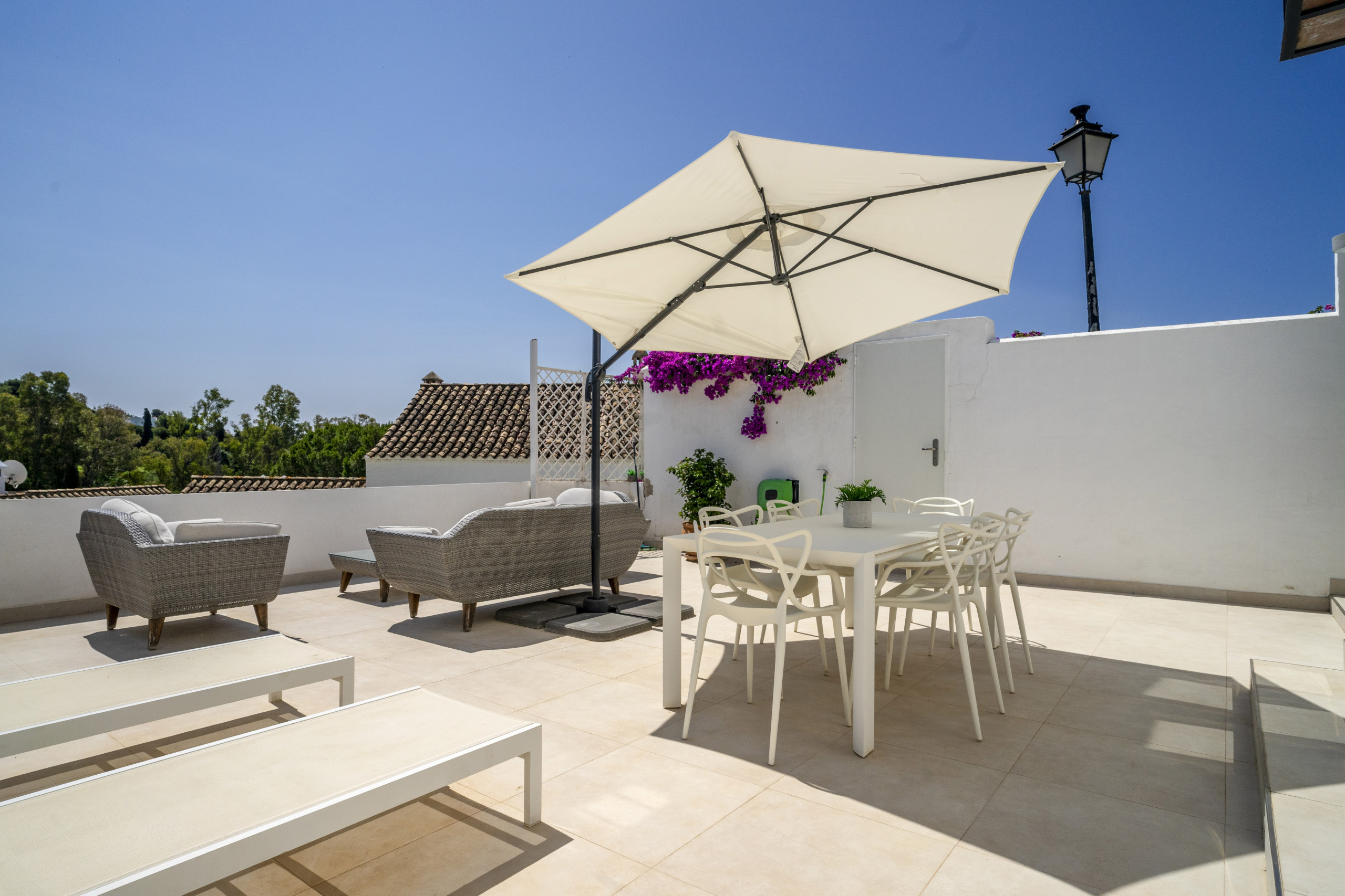 Dieses wunderschöne 3-Schlafzimmer-Reihenhaus liegt perfekt im begehrten Las-Buganvillas-Gebiet in der Nähe von La Campana und bietet sowohl Ruhe als auch einfachen Zugang zu den besten Annehmlichkeiten von Marbella. Die Immobilie verfügt über einen privaten, eingezäunten Eingang mit Platz für ein Auto sowie zusätzliche Straßenparkplätze entlang der Straße.