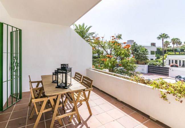 Wir stellen Ihnen diese geschmackvoll eingerichtete Wohnung mit einem Schlafzimmer im obersten Stockwerk vor, von der aus Sie alle Annehmlichkeiten zu Fuß erreichen können. Die Lage ist perfekt für Ihren nächsten Urlaub als nur ein paar Schritte entfernt haben Sie Zugang zu mehreren Restaurants, Cafés und Supermärkte. Das Anwesen ist nur wenige Gehminuten vom Centro Plaza und dem berühmten Puerto Banus entfernt. Um das Anwesen zu erreichen, gehen Sie eine Treppe hinauf. Im Inneren befindet sich auf der rechten Seite das Schlafzimmer mit separatem Bad mit Dusche. Links vom Eingang finden Sie die offene Küche, das Wohn- und Esszimmer. Direkter Zugang zu einer schönen Terrasse. Das Haus ist mit allen Annehmlichkeiten ausgestattet: Bettwäsche, Handtücher, Poolhandtücher, Nespresso-Kaffeemaschine, TV, Wifi und Grill. Es gibt einen Straßenparkplatz direkt vor dem Haus. Das Anwesen hat Zugang zu den Einrichtungen des Andalucia Garden Club, die einen großen Gemeinschaftspool und Tennisplatz bietet. Eine unschlagbare Lage für Ihren nächsten Urlaub!
