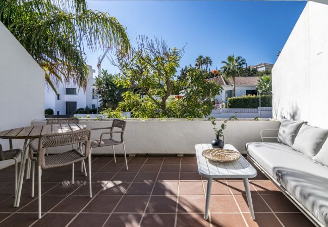 Wir stellen Ihnen diese geschmackvoll eingerichtete Wohnung mit einem Schlafzimmer im obersten Stockwerk vor, von der aus Sie alle Annehmlichkeiten zu Fuß erreichen können. Die Lage ist perfekt für Ihren nächsten Urlaub als nur ein paar Schritte entfernt haben Sie Zugang zu mehreren Restaurants, Cafés und Supermärkte. Das Anwesen ist nur wenige Gehminuten vom Centro Plaza und dem berühmten Puerto Banus entfernt. Um das Anwesen zu erreichen, gehen Sie eine Treppe hinauf. Im Inneren befindet sich auf der rechten Seite das Schlafzimmer mit separatem Bad mit Dusche. Links vom Eingang finden Sie die offene Küche, das Wohn- und Esszimmer. Direkter Zugang zu einer schönen Terrasse. Das Haus ist mit allen Annehmlichkeiten ausgestattet: Bettwäsche, Handtücher, Poolhandtücher, Nespresso-Kaffeemaschine, TV, Wifi und Grill. Es gibt einen Straßenparkplatz direkt vor dem Haus. Das Anwesen hat Zugang zu den Einrichtungen des Andalucia Garden Club, die einen großen Gemeinschaftspool und Tennisplatz bietet. Eine unschlagbare Lage für Ihren nächsten Urlaub!