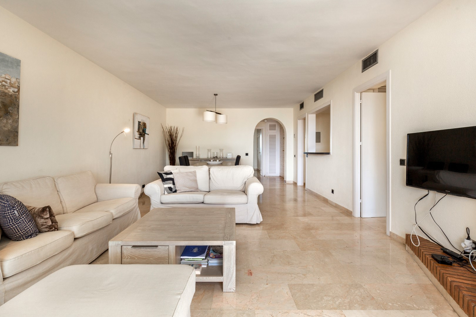 Renovierte 2 Schlafzimmer, Südlage, Erdgeschoss-Wohnung, neben Centro Plaza mit teilweisem Meerblick und nur 2 Minuten zu Fuß zu allen Annehmlichkeiten gelegen. Nur 10 Minuten hinunter nach Puerto Banus und den umliegenden Stränden.