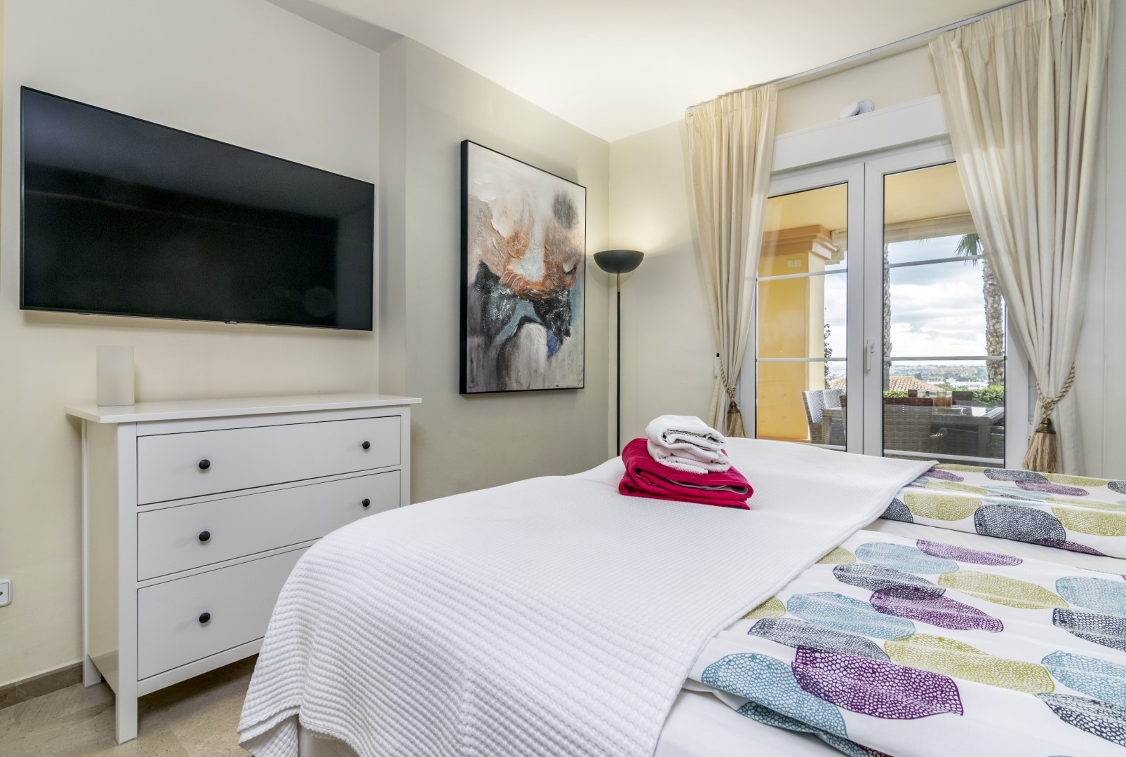 Renovierte und schön präsentierte Erdgeschosswohnung mit zwei Schlafzimmern in Cumbres del Rodeo zu vermieten. Cumbres del Rodeo liegt am Rande des Nueva Andalucia Golf Valley, nur wenige Gehminuten von Bars und Restaurants und nur fünf Minuten vom Strand entfernt.