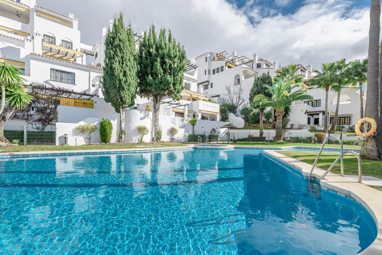 2-Schlafzimmer-Wohnung für Ferienvermietungen in der Gated Community von Aloha Gardens mit 24 Stunden Sicherheit zur Verfügung. Die Gemeinschaft hat schöne Gemeinschaftsgärten und 3 Swimmingpools, von denen einer beheizt ist. Die Wohnung ist komplett renoviert, einschließlich einer aktualisierten Küche, zwei große Schlafzimmer, 1 Badezimmer mit Hydromassage und ein gemütliches Wohnzimmer mit Zugang zur Terrasse. Tolle Wohnung in einer ausgezeichneten Lage. Das Anwesen verfügt über spanische TV-Kanäle und auch Apple TV System, wo auch Netflix verwendet werden kann.