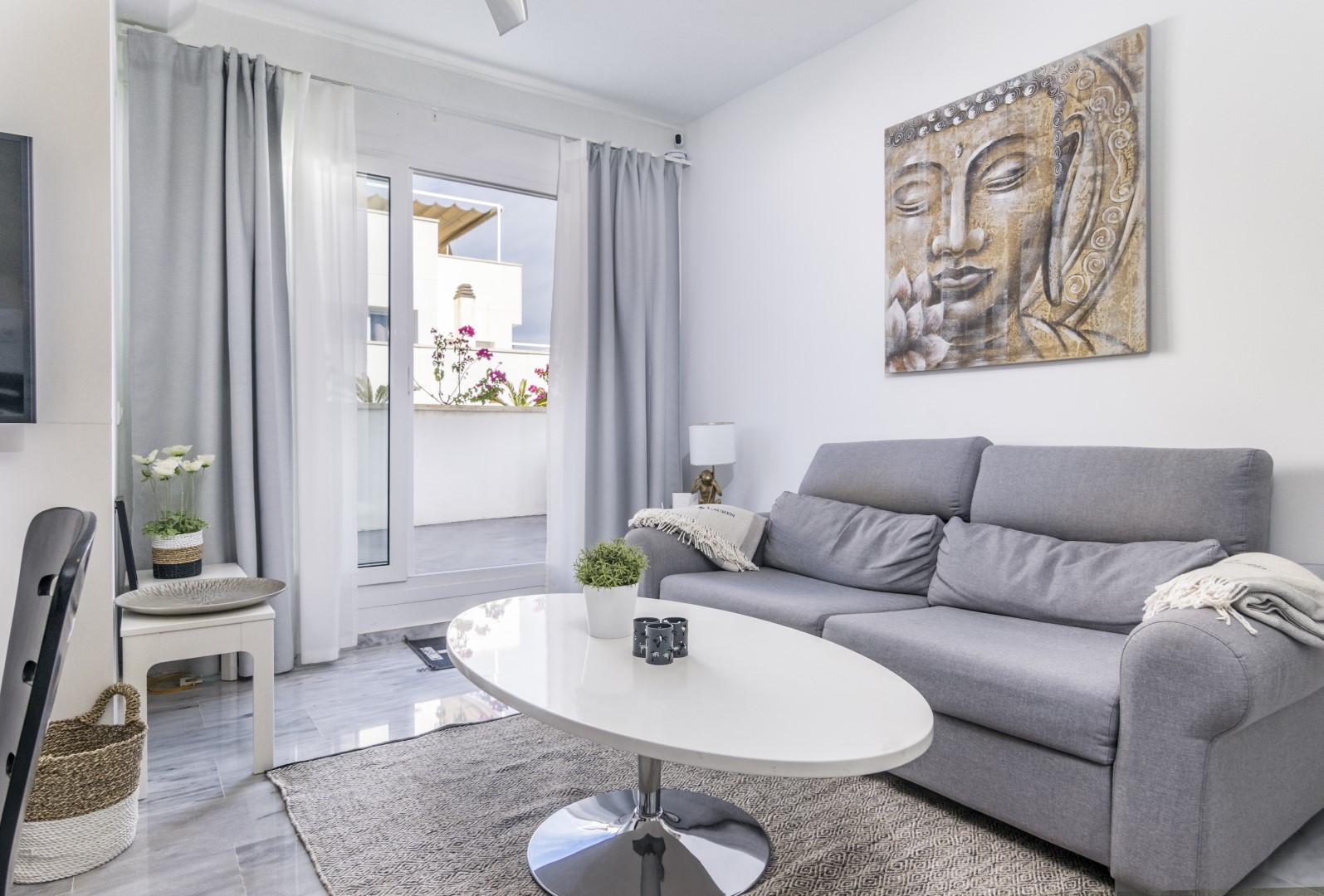 Attraktives Eck-Penthouse mit zwei Schlafzimmern in La Dama de Noche, das für Ferienvermietungen zur Verfügung steht. Die geschlossene Wohnanlage hat 24 Stunden Sicherheit mit Wache und Videoüberwachung. Die Anlage ist bei Urlaubern sehr beliebt, da sie zwei große Swimmingpools mit viel Platz zum Sonnenbaden, Padel-Tennisplätze, gepflegte Gartenanlagen, ein Café und einen Minimarkt vor Ort bietet.