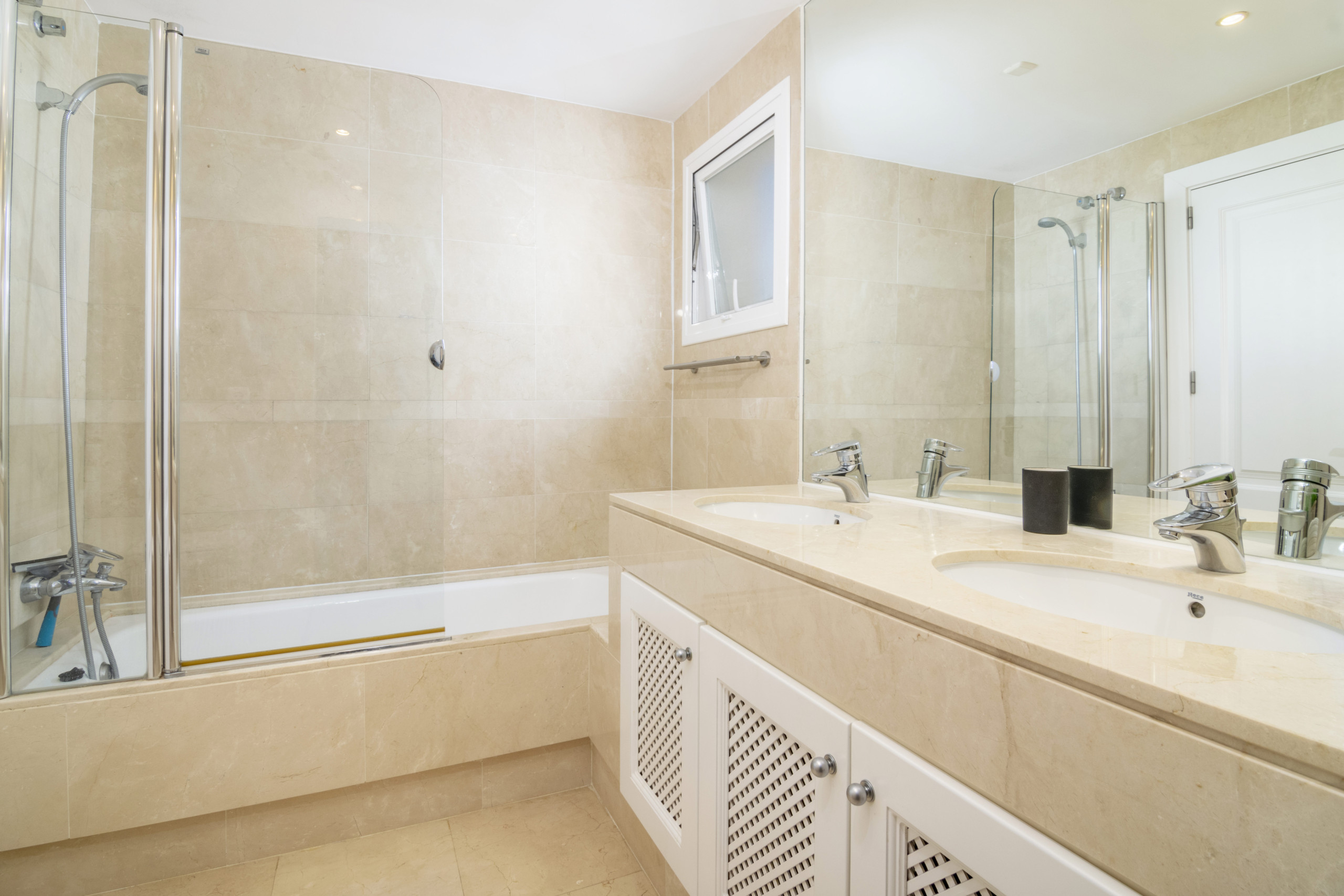 Die Wohnung verfügt über zwei hübsch eingerichtete Schlafzimmer, das Hauptschlafzimmer mit eigenem Bad mit Badewanne und das Gästeschlafzimmer mit separatem Bad.