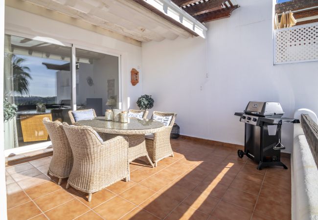 Attraktives Eck-Penthouse mit zwei Schlafzimmern in La Dama de Noche, das für Ferienvermietungen zur Verfügung steht. Die geschlossene Wohnanlage hat 24 Stunden Sicherheit mit Wache und Videoüberwachung. Die Anlage ist bei Urlaubern sehr beliebt, da sie zwei große Swimmingpools mit viel Platz zum Sonnenbaden, Padel-Tennisplätze, gepflegte Gartenanlagen, ein Café und einen Minimarkt vor Ort bietet.