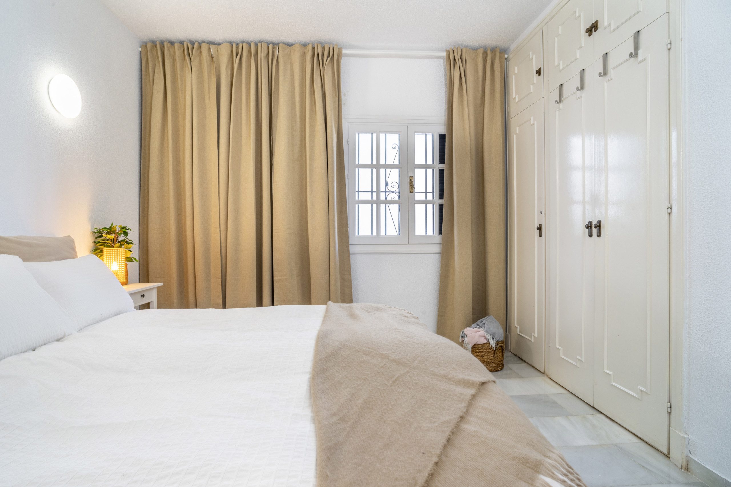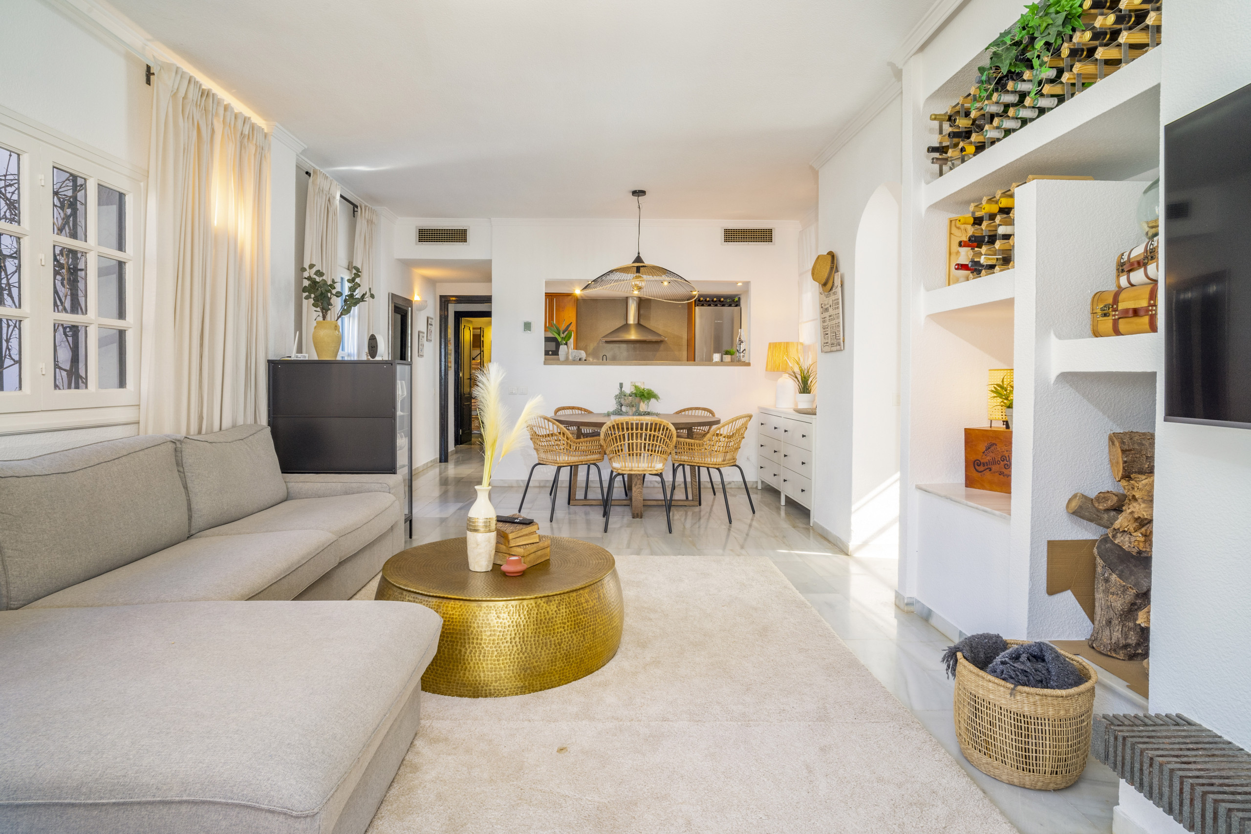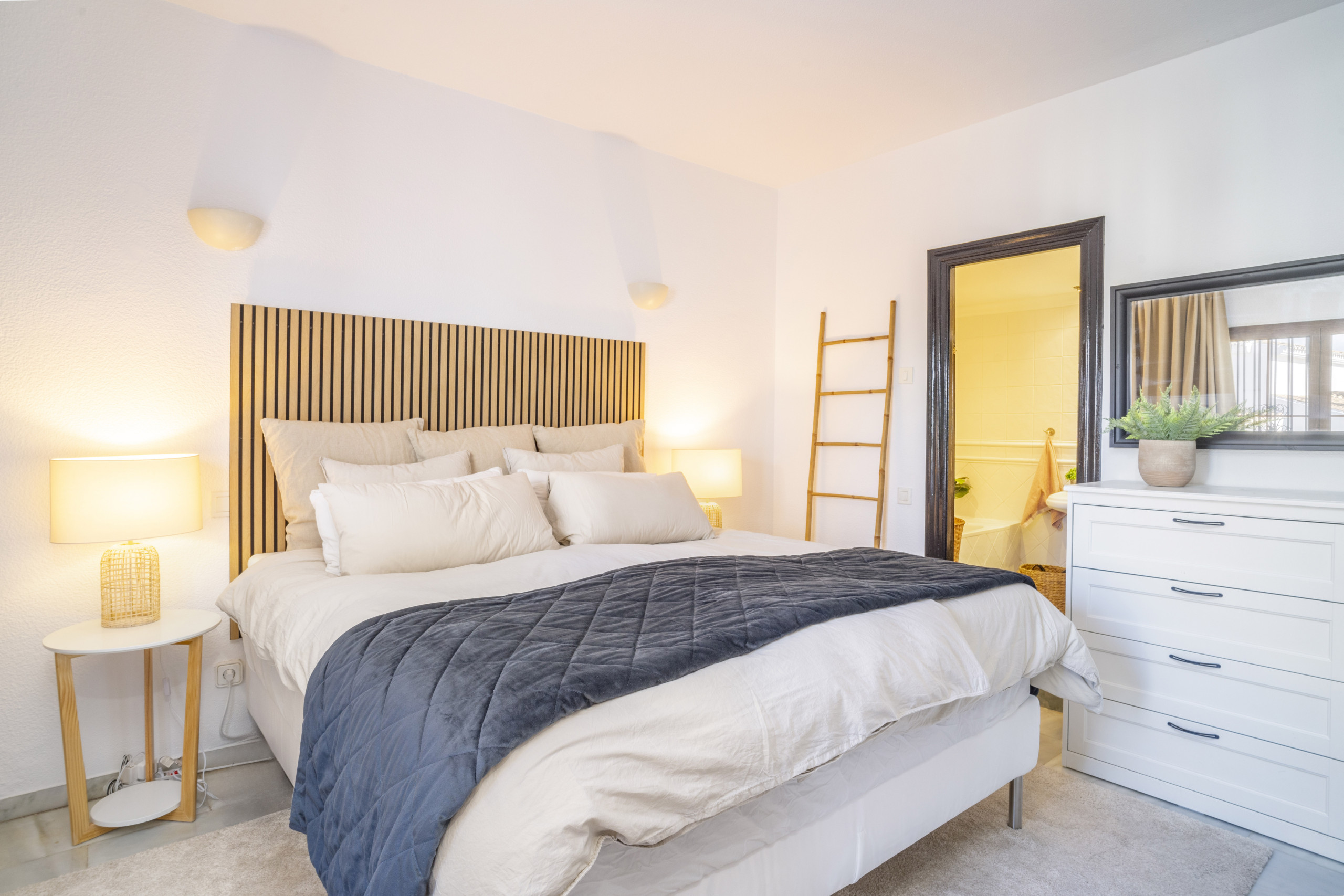 Diese wunderschön gestaltete Wohnung im skandinavischen Stil befindet sich in der sehr begehrten Urbanisation Aldea Blanca und bietet das perfekte Gleichgewicht zwischen modernem Komfort und Bequemlichkeit. Es ist leicht zu verstehen, warum dieser Standort so beliebt ist – er bietet nicht nur eine ruhige und stilvolle Umgebung, sondern bringt Sie auch in Gehdistanz zu allem, was Sie benötigen, um Ihren Urlaub zu genießen. Ob Sie Lust auf einen köstlichen Happen in einem nahe gelegenen Café haben, einen gemütlichen Spaziergang zum lebhaften Puerto Banús machen oder den belebten Samstagsmarkt im Centro Plaza erkunden möchten – alles liegt direkt vor Ihrer Tür.