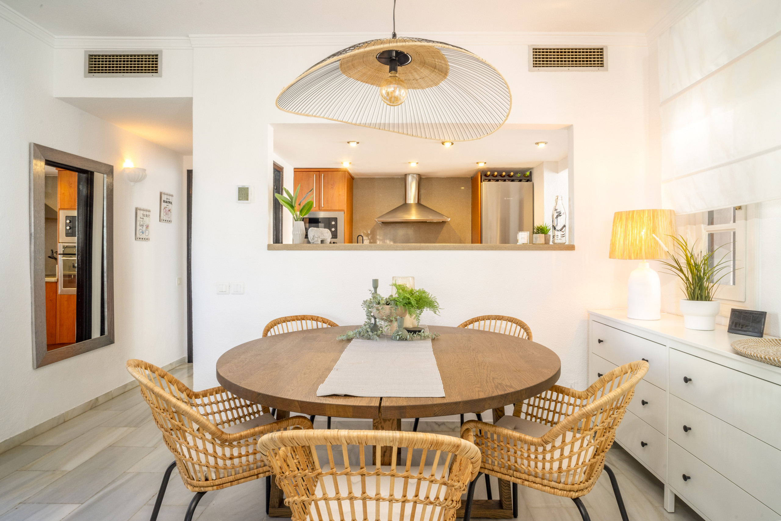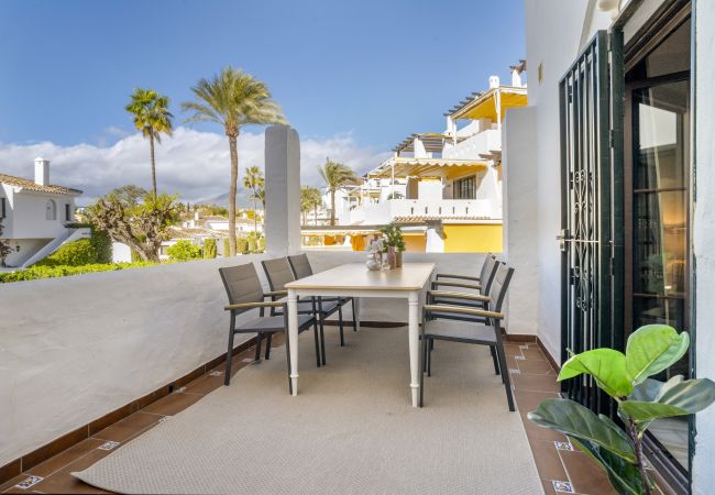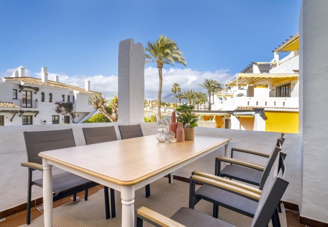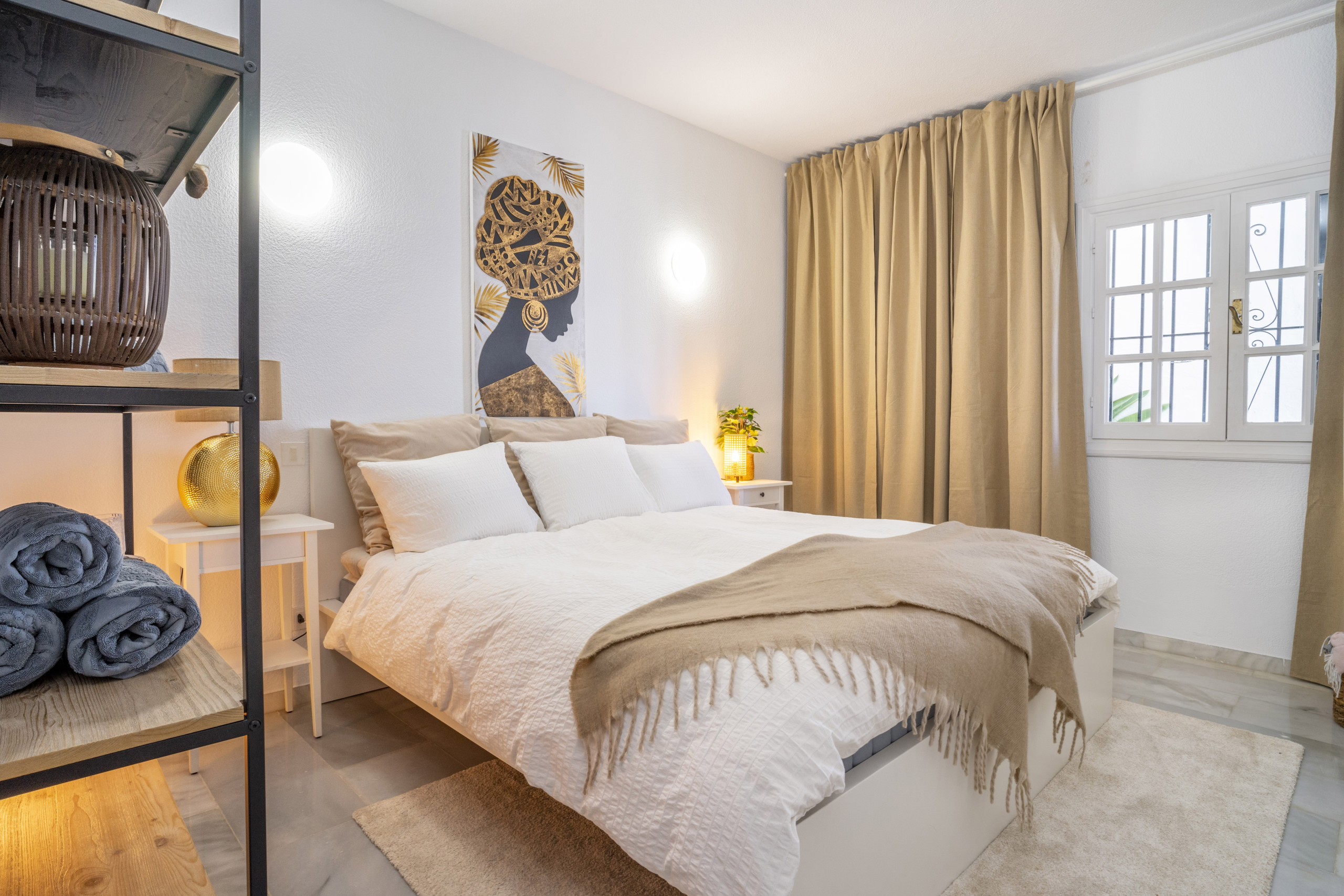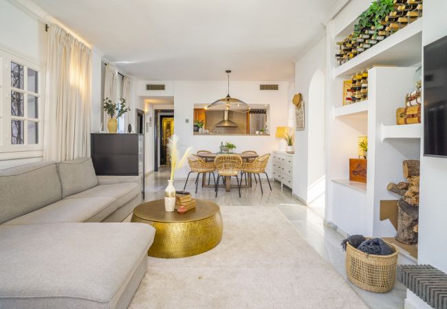 Diese wunderschön gestaltete Wohnung im skandinavischen Stil befindet sich in der sehr begehrten Urbanisation Aldea Blanca und bietet das perfekte Gleichgewicht zwischen modernem Komfort und Bequemlichkeit. Es ist leicht zu verstehen, warum dieser Standort so beliebt ist – er bietet nicht nur eine ruhige und stilvolle Umgebung, sondern bringt Sie auch in Gehdistanz zu allem, was Sie benötigen, um Ihren Urlaub zu genießen. Ob Sie Lust auf einen köstlichen Happen in einem nahe gelegenen Café haben, einen gemütlichen Spaziergang zum lebhaften Puerto Banús machen oder den belebten Samstagsmarkt im Centro Plaza erkunden möchten – alles liegt direkt vor Ihrer Tür.