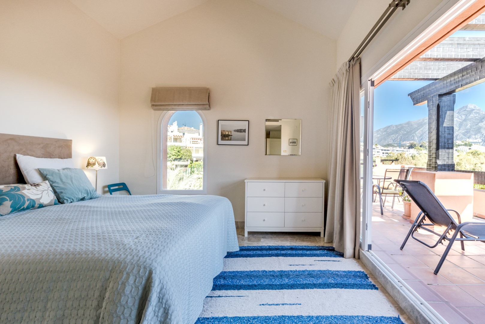 Die Hauptterrasse ist das Herzstück des Hauses. Geräumig und nach Osten ausgerichtet für Morgensonne und Panoramablicke. Es ist der perfekte Ort, um den Tag mit einem Frühstück in der Sonne zu beginnen oder nach der Erkundung von Marbella mit Abendgetränken zu entspannen.
