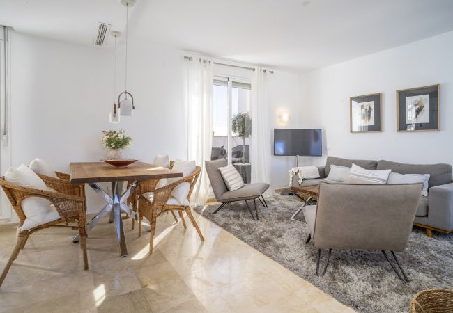 Willkommen in diesem hellen Penthouse im Señorio de Aloha, einer perfekten Basis für Familien, Freunde oder Paare, die Marbella besuchen. Es befindet sich im obersten Stockwerk einer sicheren, gut gepflegten Gemeinschaft und verbindet entspannte Behaglichkeit mit atemberaubenden Blicken auf das Mittelmeer und La Concha.