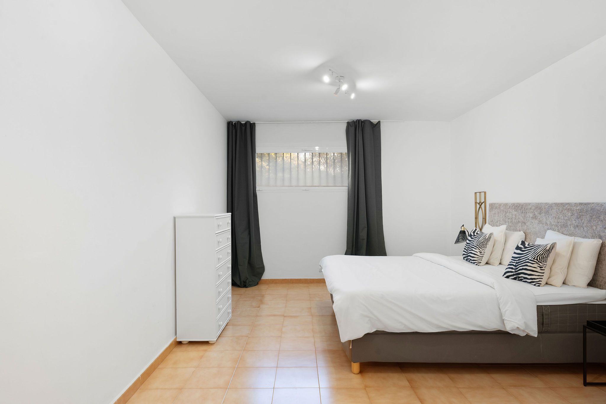 Dies ist eine Wohnung mit 4 Schlafzimmern und 2 Wohnbereichen. Die Suche nach einer Wohnung in dieser Lage mit 4 Schlafzimmern ist nicht einfach, so ist dies ein seltener Fund! Es handelt sich um eine Erdgeschosswohnung, die aus Gründen der Bequemlichkeit über eine Ebene gebaut wurde. Der Eingang führt in den offenen Grundriss der Wohnung, mit dem Wohnzimmer auf der rechten Seite und dem Esszimmer auf der linken Seite. Auf der linken Seite befinden sich drei stilvoll und geschmackvoll eingerichtete Schlafzimmer, ein Doppelschlafzimmer an einem Ende und zwei weitere Schlafzimmer, die durch ein gemütliches Fernsehzimmer mit Soundbar und elektrischem Kamin verbunden sind. Diese beiden Schlafzimmer teilen sich ein Badezimmer mit begehbarer Dusche. Auf dieser Seite des Hauses finden Sie auch viel Stauraum und eine Waschküche. Das Wohnzimmer und die offene Küche haben Zugang zu einer großen, sonnigen Terrasse mit Südausrichtung.