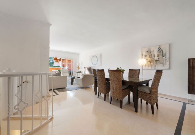 Diese geräumige 4-Zimmer-Duplexwohnung ist eine hervorragende Wahl für eine Ferienvermietung im hochbegehrten Andalucia Alta, gelegen am Eingang von Nueva Andalucia. Eingebettet in eine gut etablierte und sichere Urbanisation ist die Immobilie von wunderschön gepflegten, ausgereiften Gärten umgeben, die eine friedliche, resort-ähnliche Atmosphäre schaffen. Familien werden insbesondere den kleinen Kinderspielplatz zu schätzen wissen, während der einladende Gemeinschaftspool-Bereich perfekt zum Entspannen unter der mediterranen Sonne ist. Eines der herausragenden Merkmale von Andalucia Alta ist seine hervorragende Lage, die die seltene Bequemlichkeit bietet, alle Annehmlichkeiten fußläufig zu erreichen, was es zu einer idealen Basis für einen autofreien Urlaub an der Costa del Sol macht.