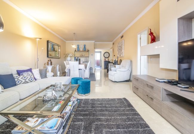 Fantastische 4-Zimmer-Wohnung für Urlaub Mieten in Embrujo Playa. Perfekte Lage. Ideal für eine Familie. Nur wenige Gehminuten zum Strand, Supermarkt, Restaurants und Puerto Banus.