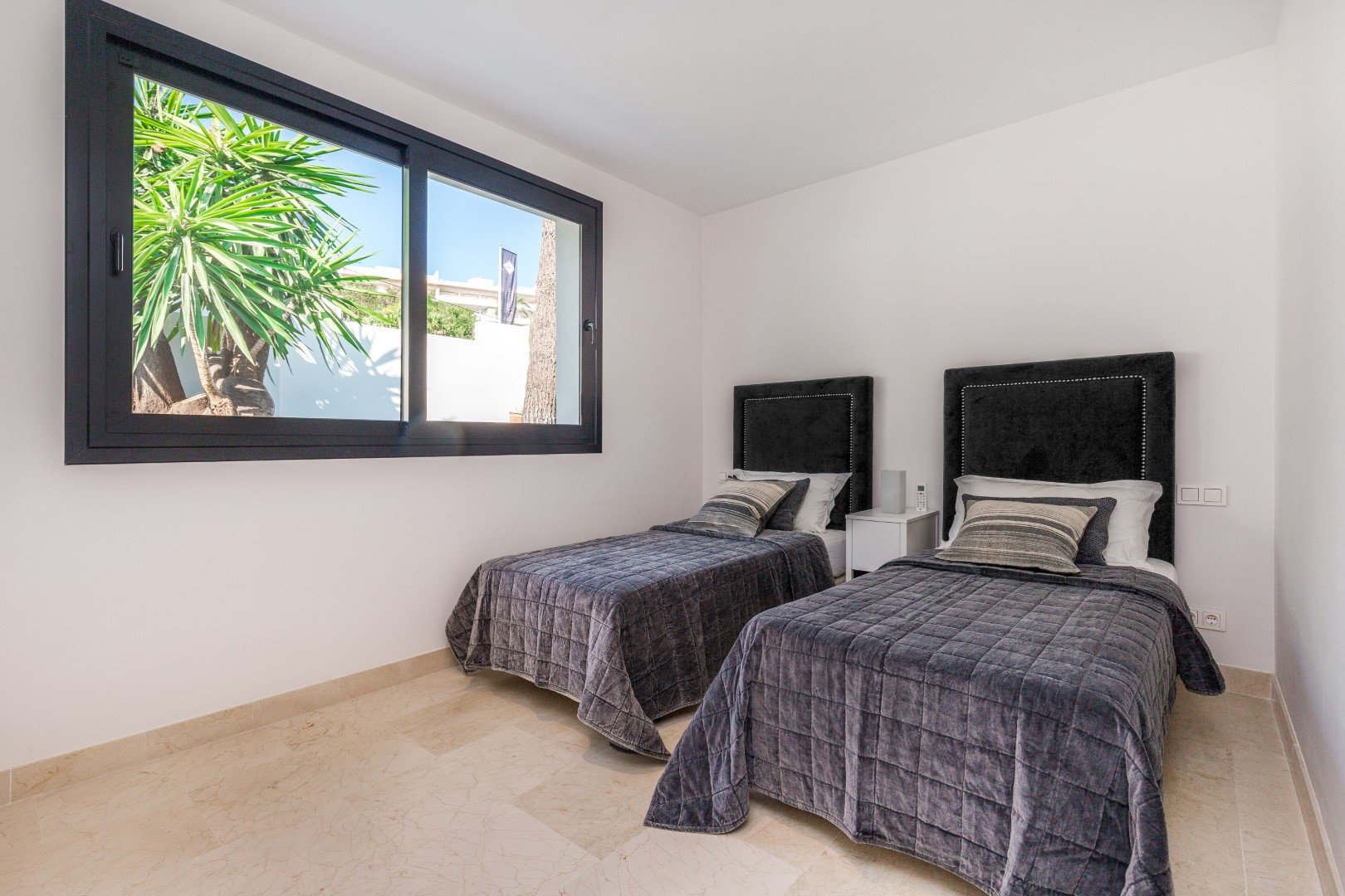 Aufwendig renoviert und nach höchsten Standards, wurde die Immobilie individuell gestaltet, um ein luxuriöses zeitgenössisches Zuhause zu schaffen. Diese Villa ist komfortabel auf einer Ebene verteilt und bietet leichten Zugang (nur einige Stufen am Eingang). Sie bietet reichlich Licht und beeindruckende Ausblicke auf den La Concha Berg und den Las Brisas Golfplatz. Beim Betreten finden Sie links eine Gästetoilette. Auf der rechten Seite befindet sich ein Doppelschlafzimmer mit eigenem Badezimmer. Links vom Eingang finden Sie drei weitere Schlafzimmer. Zwei davon teilen sich ein Badezimmer (ein Schlafzimmer mit Einzelbetten und eines mit Doppelbett). Das Hauptschlafzimmer ist geräumig, geschmackvoll eingerichtet und bietet atemberaubende Ausblicke mit einem eigenen Badezimmer. Geradeaus vom Eingang führt der Weg in den offenen Wohnbereich mit Wohnzimmer, moderner Küche mit Miele/Neff Geräten und Essbereich. Große Schiebetüren aus Sicherheitsglas im Wohn- und Esszimmer führen zu einer fantastischen Terrassenfläche mit Außenessbereich und Loungebereich. Es könnte keinen besseren Ort geben, um Ihren Urlaub mit Ihren Liebsten voll zu genießen! Einige Stufen führen hinunter zum Garten, Grillbereich und zum markanten Swimmingpool. Die angelegten Gärten verfügen über ein automatisches Bewässerungssystem und sind nachts wunderschön beleuchtet.