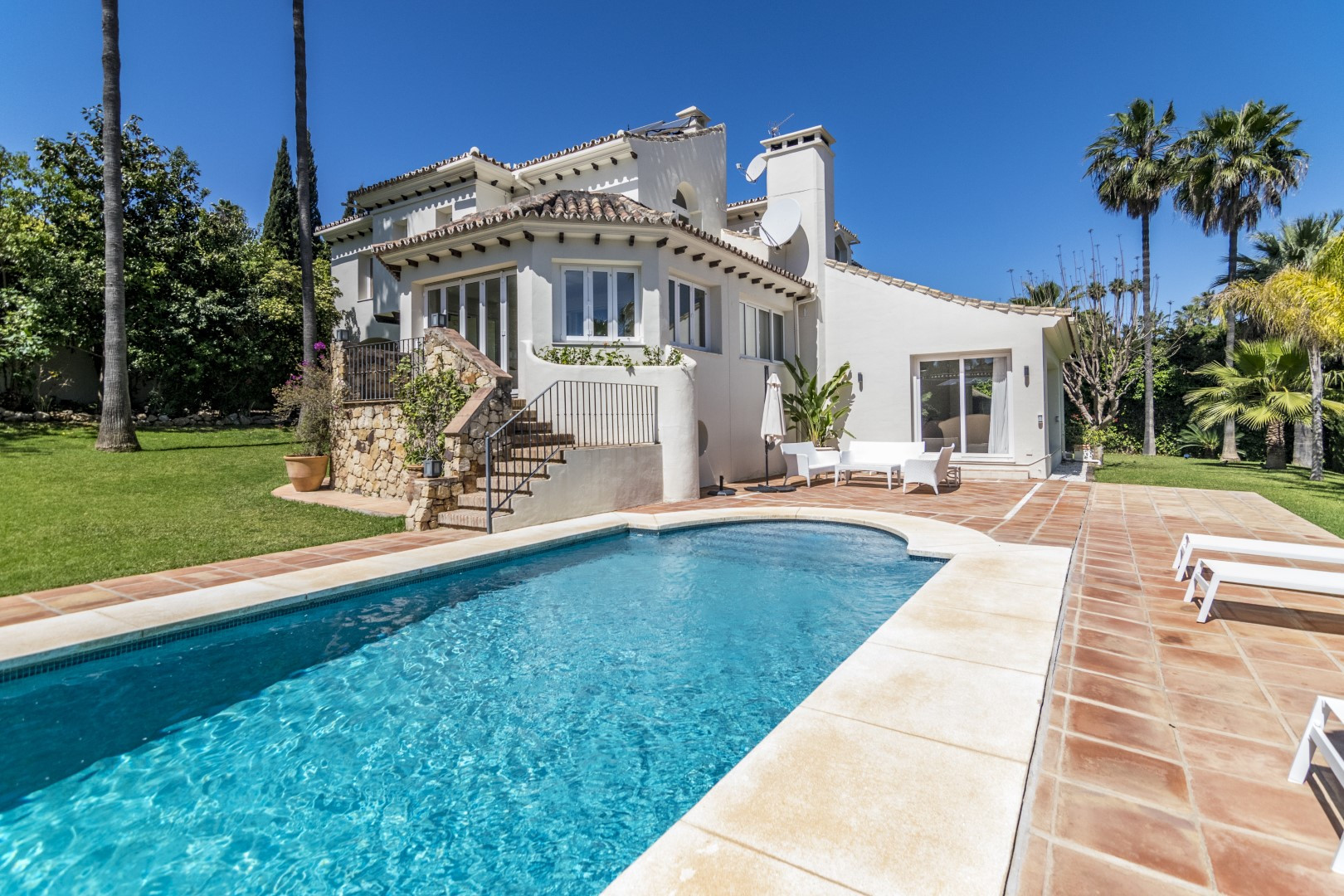 Die Villa in Neu-Andalusien verfügt über 4 Schlafzimmer und hat eine Kapazität für 9 Person(en). Unterkunft verfügt über 643 m². Die Unterkunft verfügt über einen Garten, Gartenmöbel, eine Terrasse, eine Waschmaschine, einen Grillplatz, ein Bügeleisen/-brett, ein Internetanschluss (WLAN), ein Balkon, eine Alarmanlage, eine Wärmepumpe, eine Klimaanlage in der ganzen Unterkunft, ein Privatpool, eine überdachter Parkplatz auf dem Grundstück, ein Fernsehgerät, Satelliten-TV (in den folgenden Sprache(n): Spanisch, Englisch, Deutsch, Holländisch, Französisch, Schwedisch, Norwegisch).Die Küche ist ausgestattet in einen Kühlschrank, eine Mikrowelle, ein Backofen, Gefrierschrank, eine Spülmaschine, Geschirr/Besteck, Kochutensilien, eine Kaffeemaschine, einen Toaster und einen Wasserkocher.