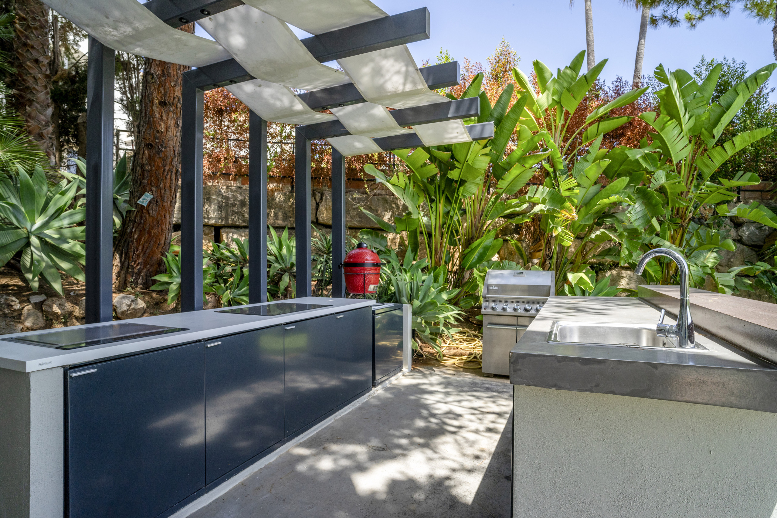 Der Außenbereich dieses Hauses ist wunderschön und bietet viele verschiedene Bereiche. Es gibt einen Essbereich im Freien, wo Sie ein Abendessen im Freien mit Ihren Freunden und Ihrer Familie genießen können. Darüber hinaus gibt es einen überdachten Sitzbereich, der einen großartigen Ort bietet, um der großen Hitze zu entkommen und etwas Schatten zu genießen.