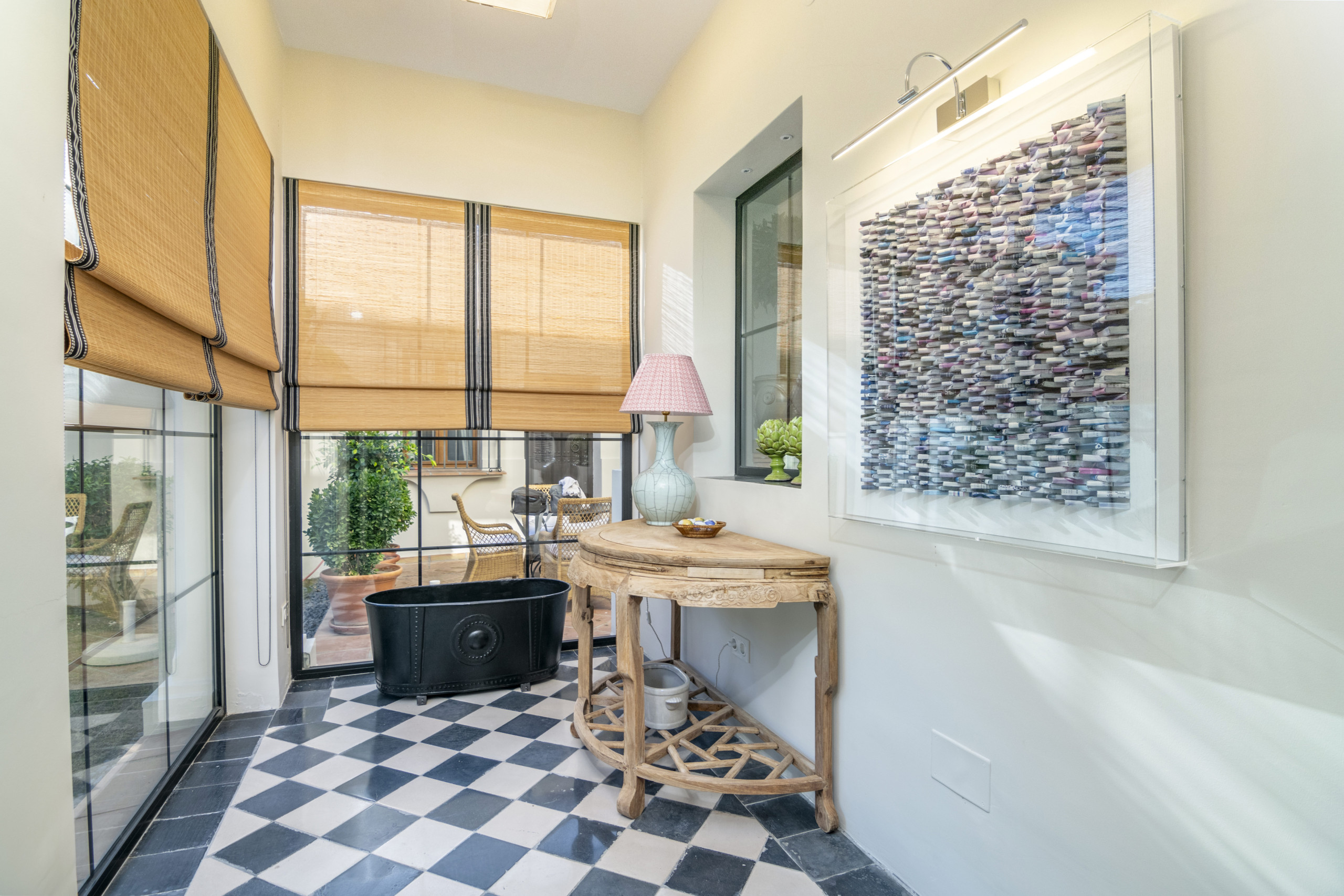 Im dritten Stock bietet ein kleiner Büroraum, der mit natürlichem Licht gefüllt ist, eine inspirierende Arbeitsumgebung von zu Hause aus, ergänzt durch eine Dachterrasse mit Panoramablick.