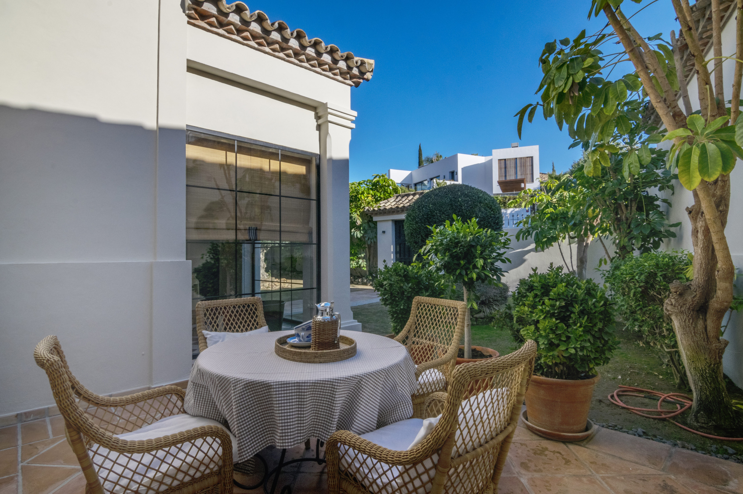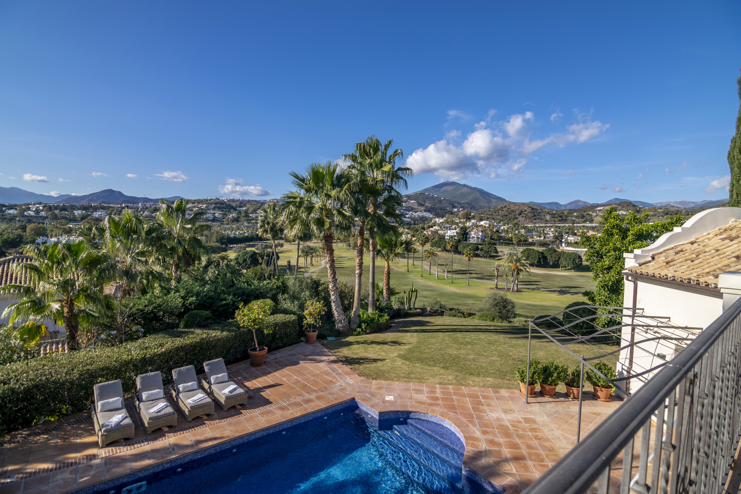 Suchen Sie eine Villa zur Vermietung, die nur wenige Gehminuten vom Los Naranjos Golf Club entfernt ist? Lassen Sie uns Ihnen diese atemberaubende Villa vorstellen, die alles bietet - ideale Lage in erster Reihe zum Golfplatz, Raffinesse und andalusischen Luxus. Genießen Sie dieses luxuriöse Haus - eine wahrhaft beruhigende Oase, in der Sie sich in Ihrem nächsten Urlaub voll und ganz entspannen und erholen können.