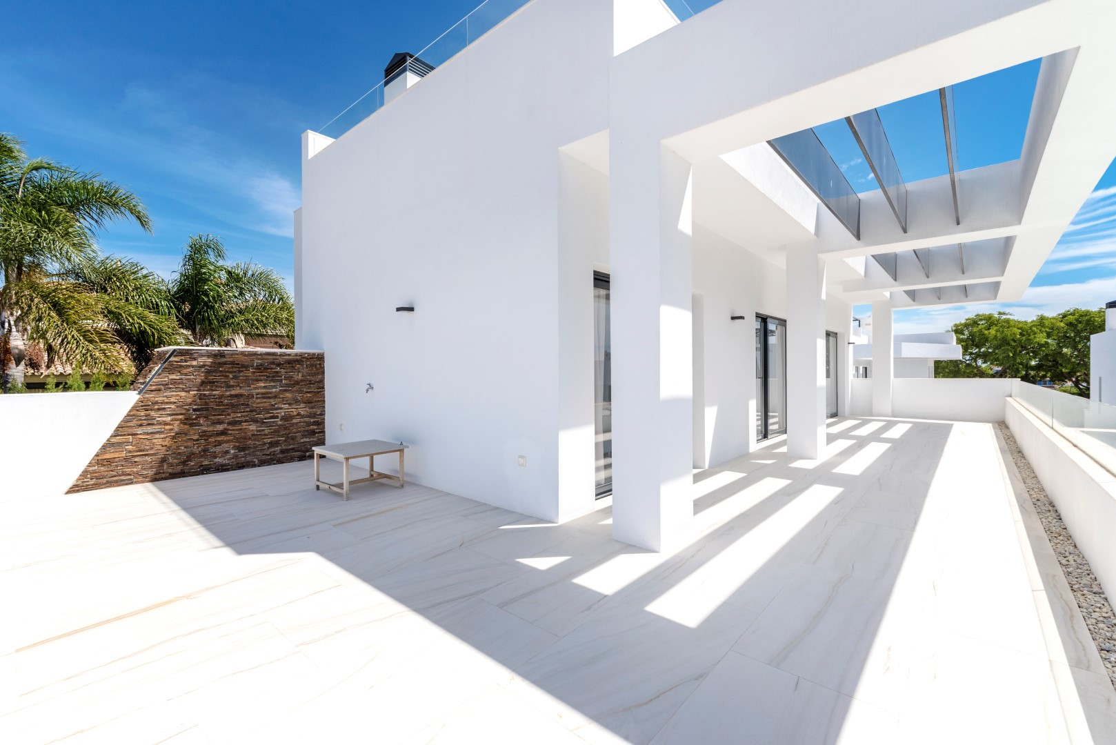 Eine weitere Etage höher führt zur beeindruckenden Dachterrasse mit fantastischem Meerblick. Hier haben Sie eine Halbküche, sodass Sie Snacks und Getränke in der Lounge genießen können und die atemberaubende Umgebung erleben.
