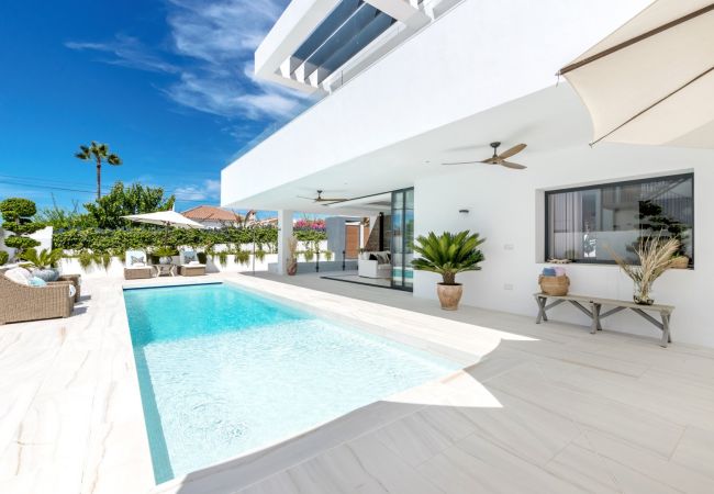 Diese Villa in San Pedro ist eine ideale Ferienhausbasis für diejenigen, die einen ruhigen Luxusaufenthalt suchen und gleichzeitig in der Nähe von Strand und Annehmlichkeiten sein möchten. Neu gebaut, zeitgenössisches Design und wunderschöne Meerblicke sind Begriffe, die diese Traumvilla am besten beschreiben und nach Ihnen rufen! Träumen Sie davon, in den Urlaub zu wachen und zum Strand für einen Morgenspaziergang gehen zu können? Möchten Sie auf Ihrer privaten Dachterrasse sitzen und den atemberaubenden Meerblick genießen? Sind Sie eine große Familie, die sich gönnen möchte, eine schöne moderne Villa für ein Familientreffen zu mieten? Dann lesen Sie weiter, wir haben die Villa für Sie...