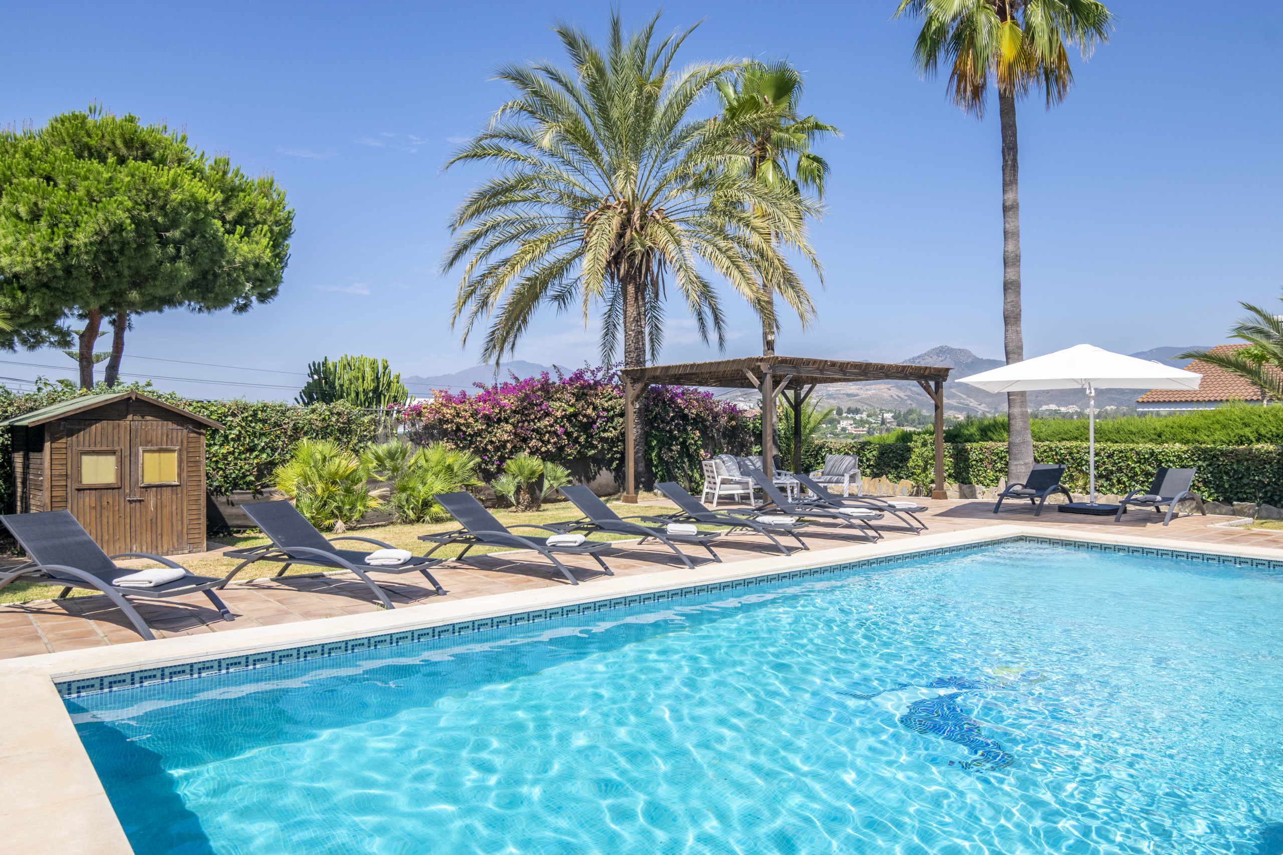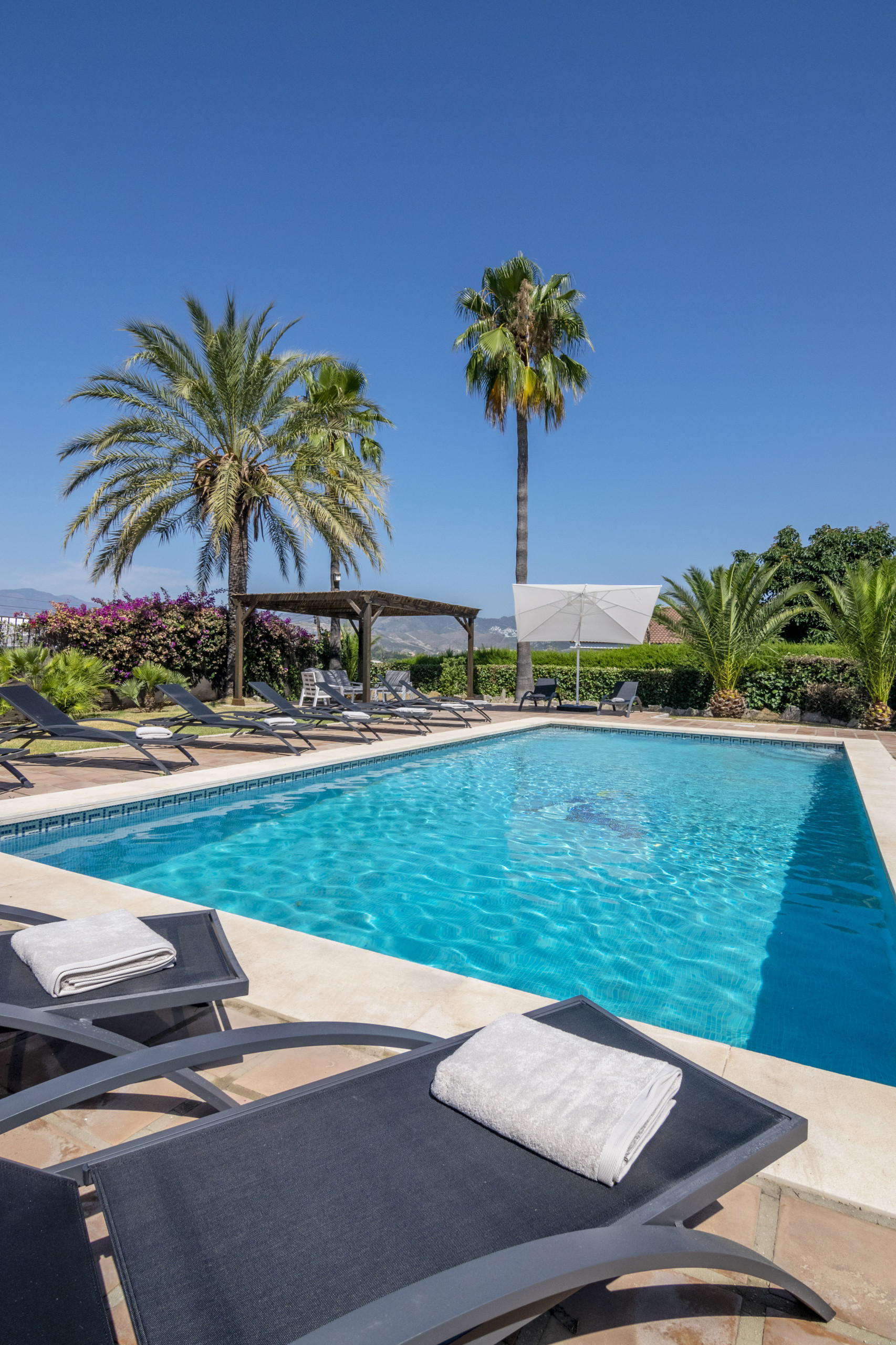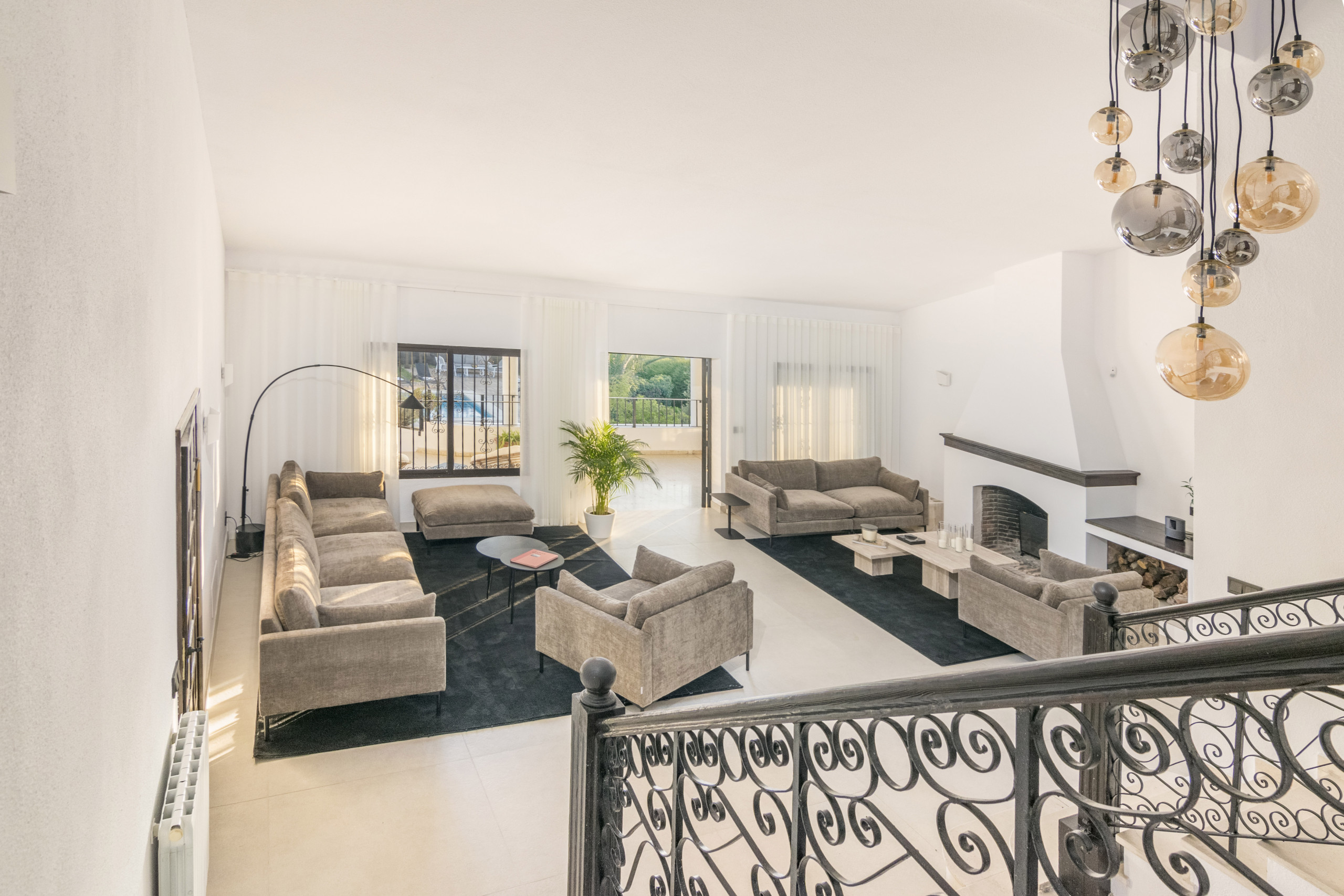 Diese Villa verfügt über 7 Schlafzimmer, davon 5 Doppelzimmer im Haupthaus und zwei im Außenbereich. Das Haus ist mit Komfort und skandinavischem Stil gestaltet. Die verwendeten Materialien und Einrichtungsgegenstände geben Ihnen ein warmes Gefühl mit einem modernen Touch von dem Moment an, wo Sie eintreten. Ein Tor mit Einfahrt führt Sie zum Haupthaus. Vor der Haustür befindet sich eine wunderbare Terrasse mit Lounge-Bereich und herrlichem Blick auf den Poolbereich und das Tal. Wenn Sie durch die Haupttür eintreten, betreten Sie das geräumige Wohnzimmer mit zwei Sitzecken und einem traditionellen Kamin, der dem Raum einen gemütlichen Charakter verleiht. Auf beiden Seiten des Wohnzimmers befinden sich zwei geschmackvoll eingerichtete Doppelschlafzimmer (zwei Schlafzimmer teilen sich ein Badezimmer). Hinter dem Wohnzimmer befindet sich der zweite Wohnbereich und der Zugang zur modernen Küche mit allen Geräten, die Sie benötigen. Über die Doppeltreppe gelangen Sie in das atemberaubende Hauptschlafzimmer mit eigenem Bad und privater Terrasse.