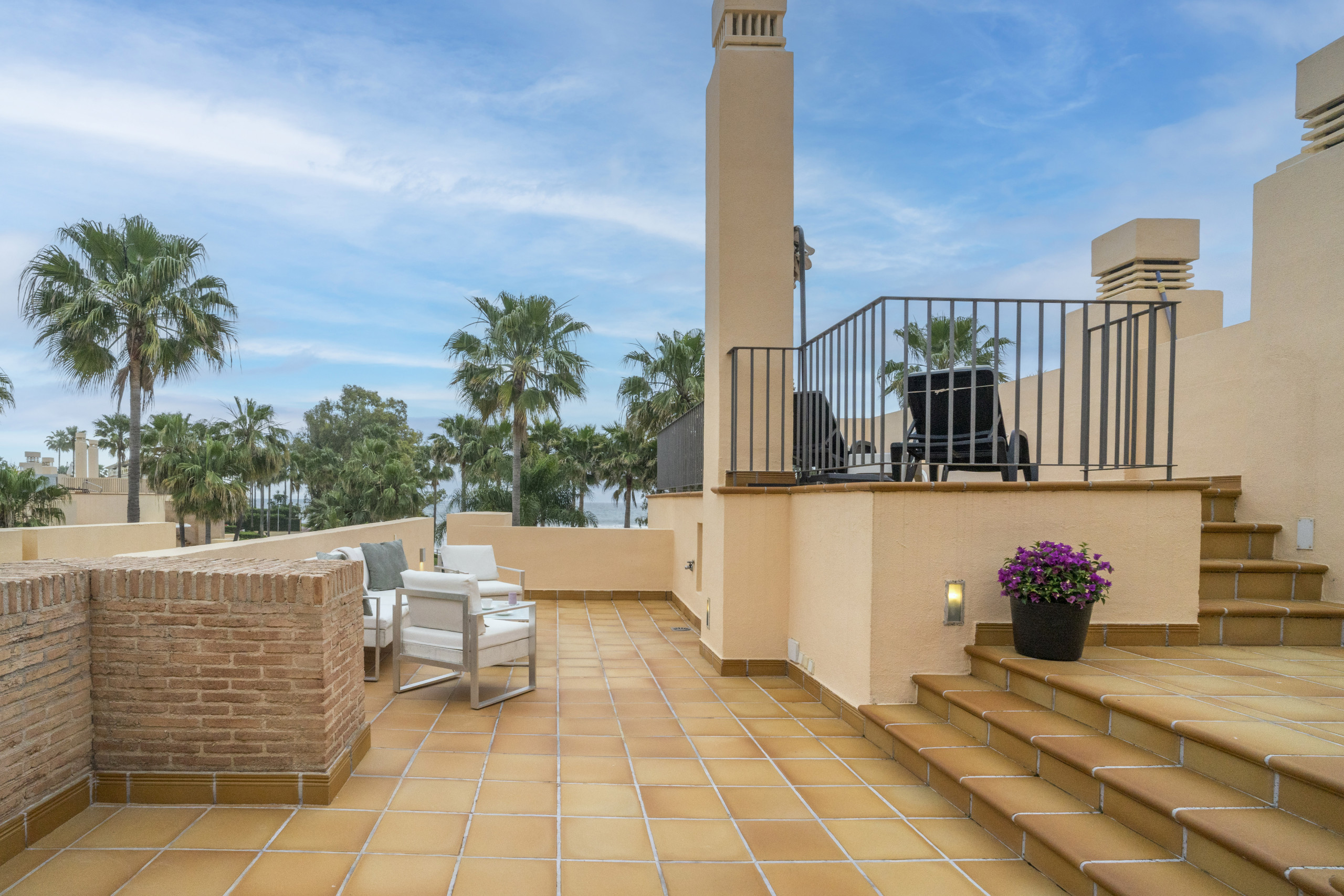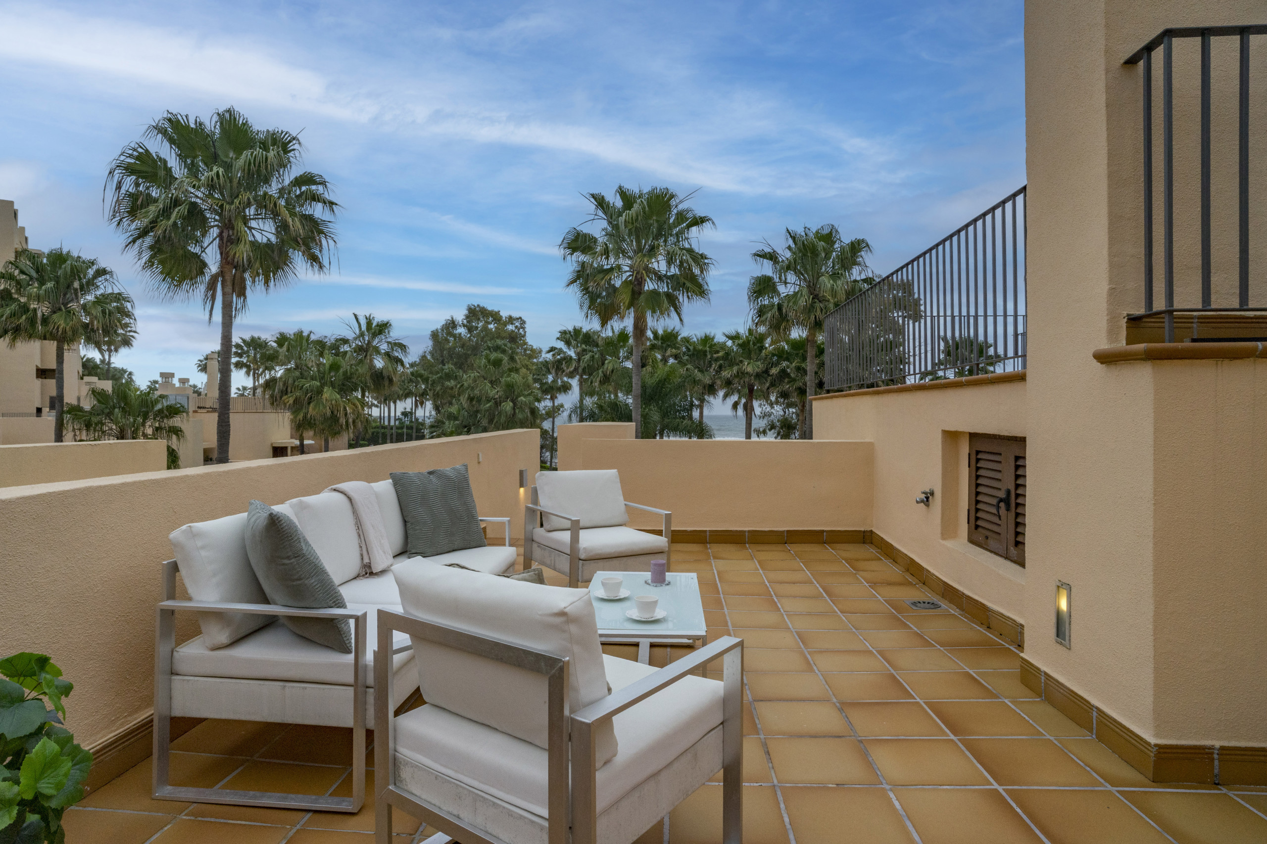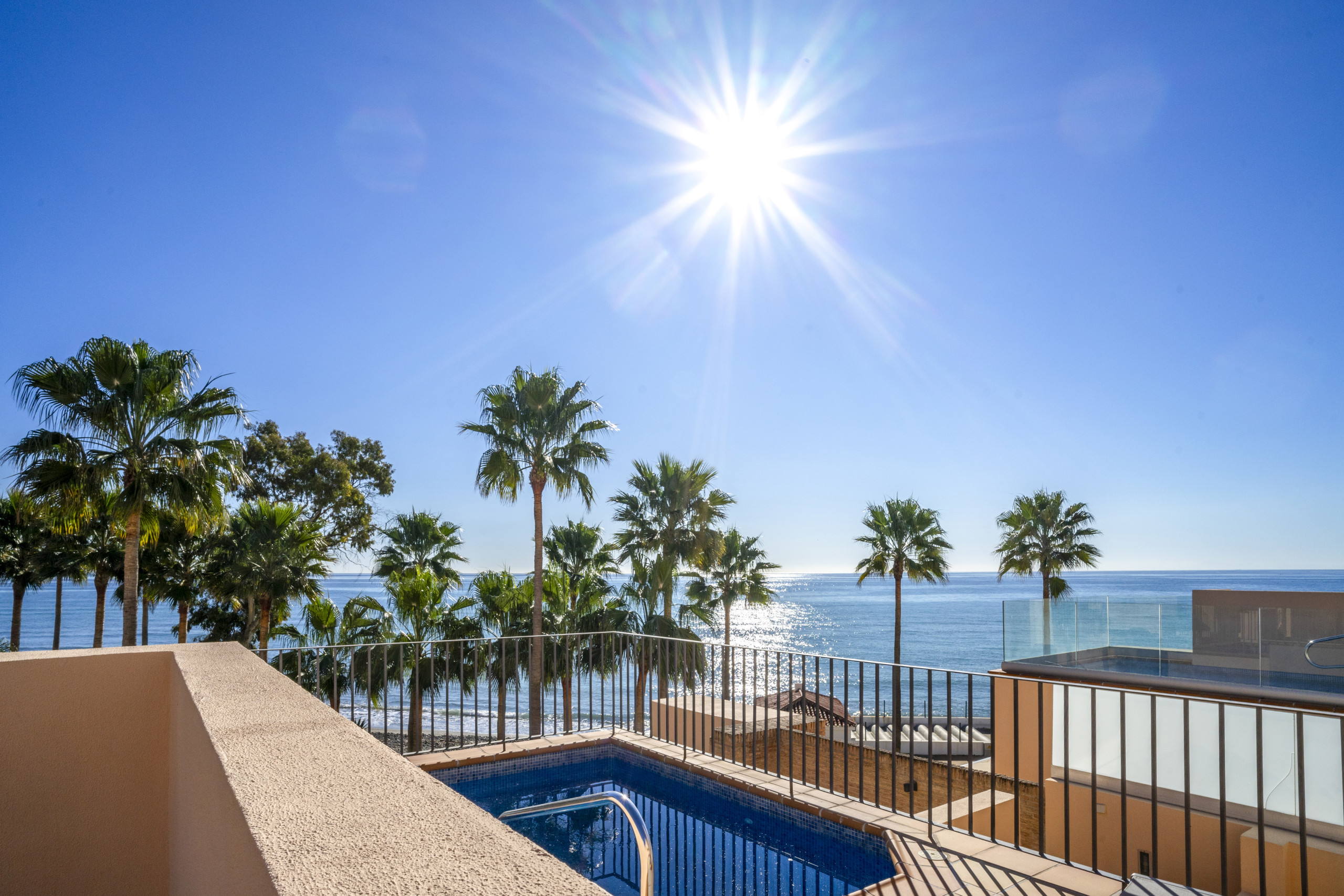 El apartamento cuenta con dos grandes terrazas, cada una con impresionantes vistas ininterrumpidas del brillante mar Mediterráneo, perfecto para comer al aire libre, relajarse o simplemente disfrutar del impresionante paisaje.