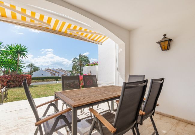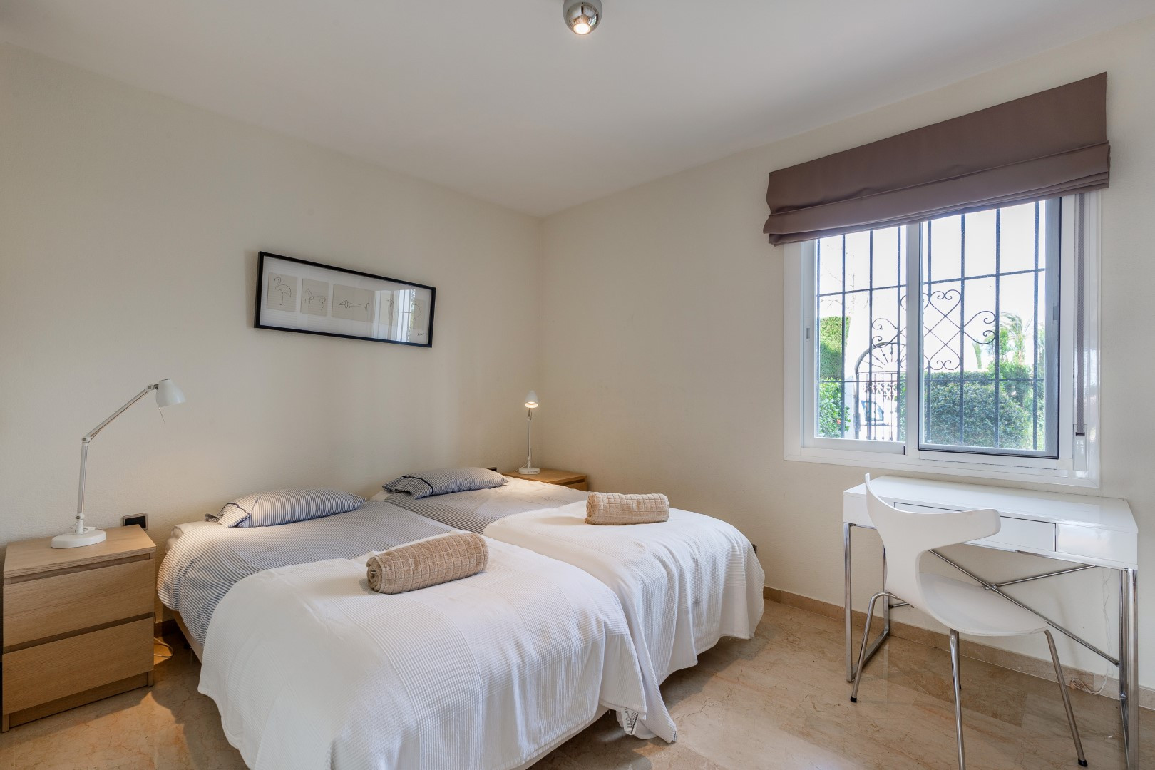 Apartamento de 2 dormitorios disponible para alquiler de vacaciones situado en la comunidad cerrada de Aloha Gardens con seguridad las 24 horas. La comunidad cuenta con hermosos jardines comunitarios y 3 piscinas, una de ellas climatizada. El apartamento está totalmente renovado, incluyendo una cocina actualizada, dos dormitorios de buen tamaño, 1 baño con hidromasaje y una cómoda sala de estar con acceso a la terraza. Gran apartamento en una excelente ubicación. La propiedad cuenta con canales de televisión españoles y también sistema de Apple TV donde también se puede utilizar Netflix.
