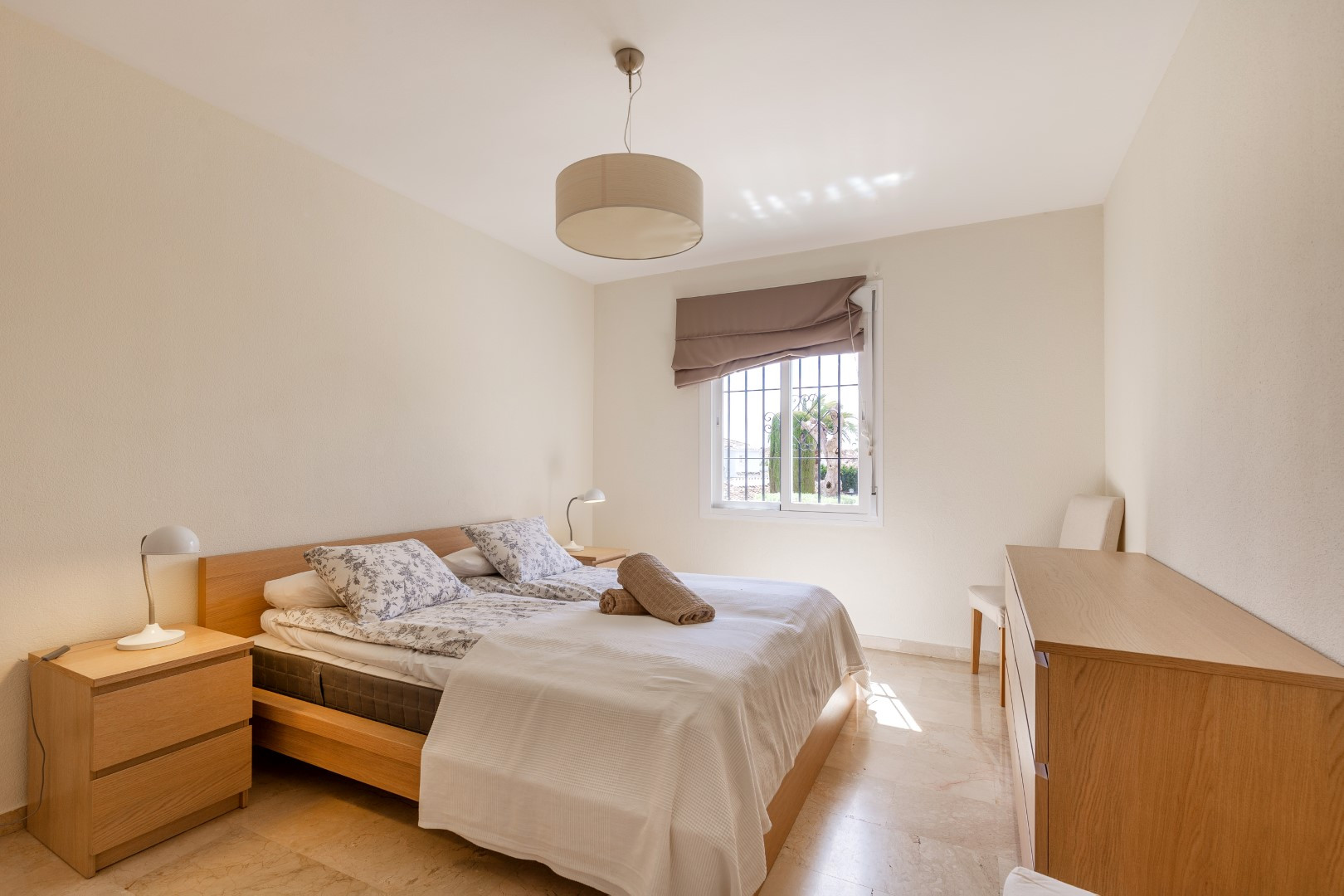Entrada, a la derecha tiene el dormitorio de invitados con 2 camas individuales y un baño separado, a continuación, a la derecha hay una sala de estar y comedor para 6 personas. Acceso a la terraza con comedor para 6 personas, barbacoa de gas y jardín comunitario. Cocina americana con lavadero independiente con lavadora y secadora.