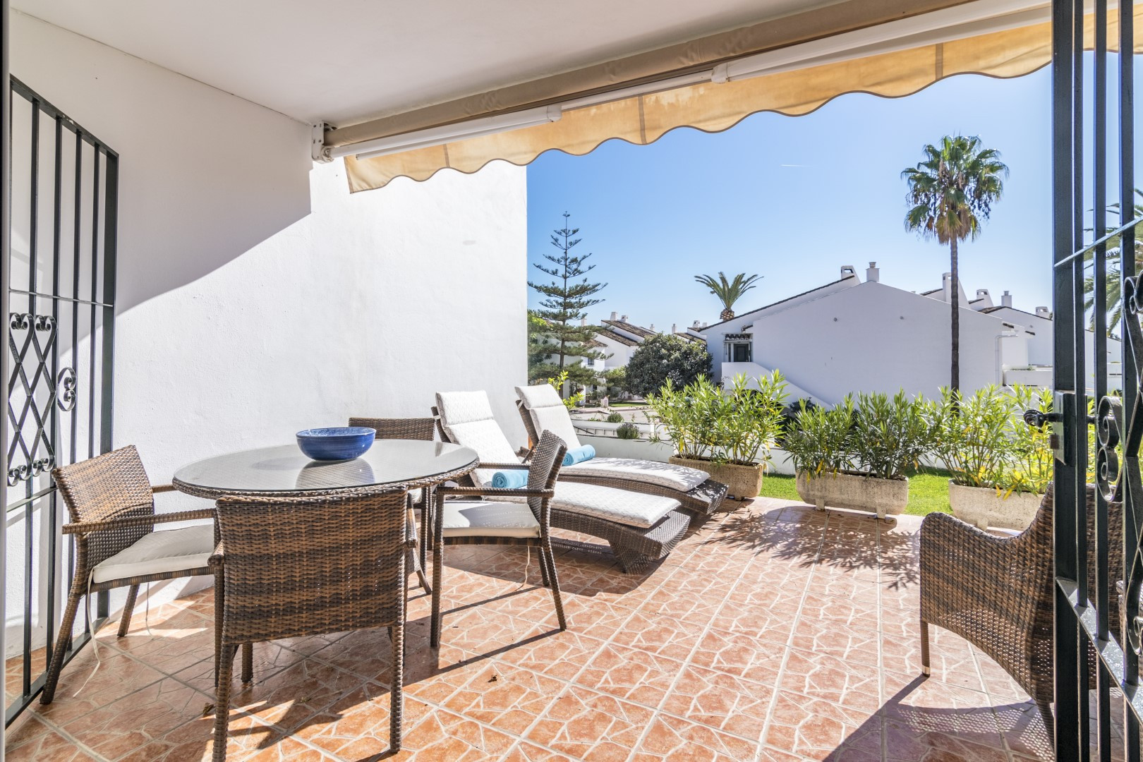 Apartamento de 2 dormitorios disponible para alquiler de vacaciones situado en la comunidad cerrada de Aloha Gardens con seguridad las 24 horas. La comunidad cuenta con hermosos jardines comunitarios y 3 piscinas, una de ellas climatizada. El apartamento está totalmente renovado, incluyendo una cocina actualizada, dos dormitorios de buen tamaño, 1 baño con hidromasaje y una cómoda sala de estar con acceso a la terraza. Gran apartamento en una excelente ubicación. La propiedad cuenta con canales de televisión españoles y también sistema de Apple TV donde también se puede utilizar Netflix.