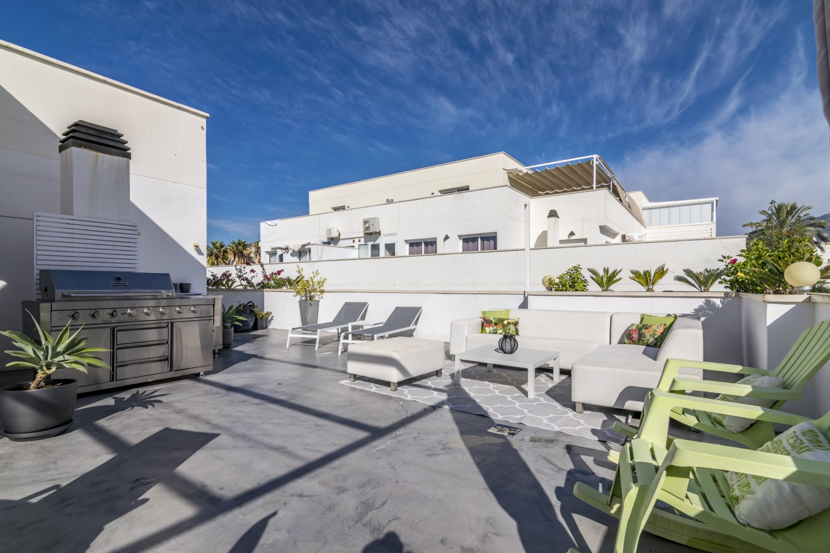 Maravilloso ático de dos dormitorios disponible para alquiler vacacional en Terrazas del Rodeo. Situado a poca distancia (2,5 km) de Puerto Banús, las playas locales y sólo un corto trayecto en coche a todos los servicios. El complejo en sí ofrece dos piscinas comunitarias, una piscina para niños y parque infantil, canchas de baloncesto y pádel, además de garaje debajo del apartamento.