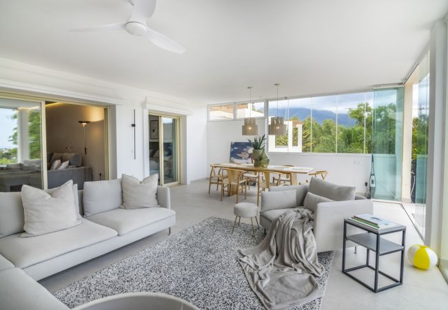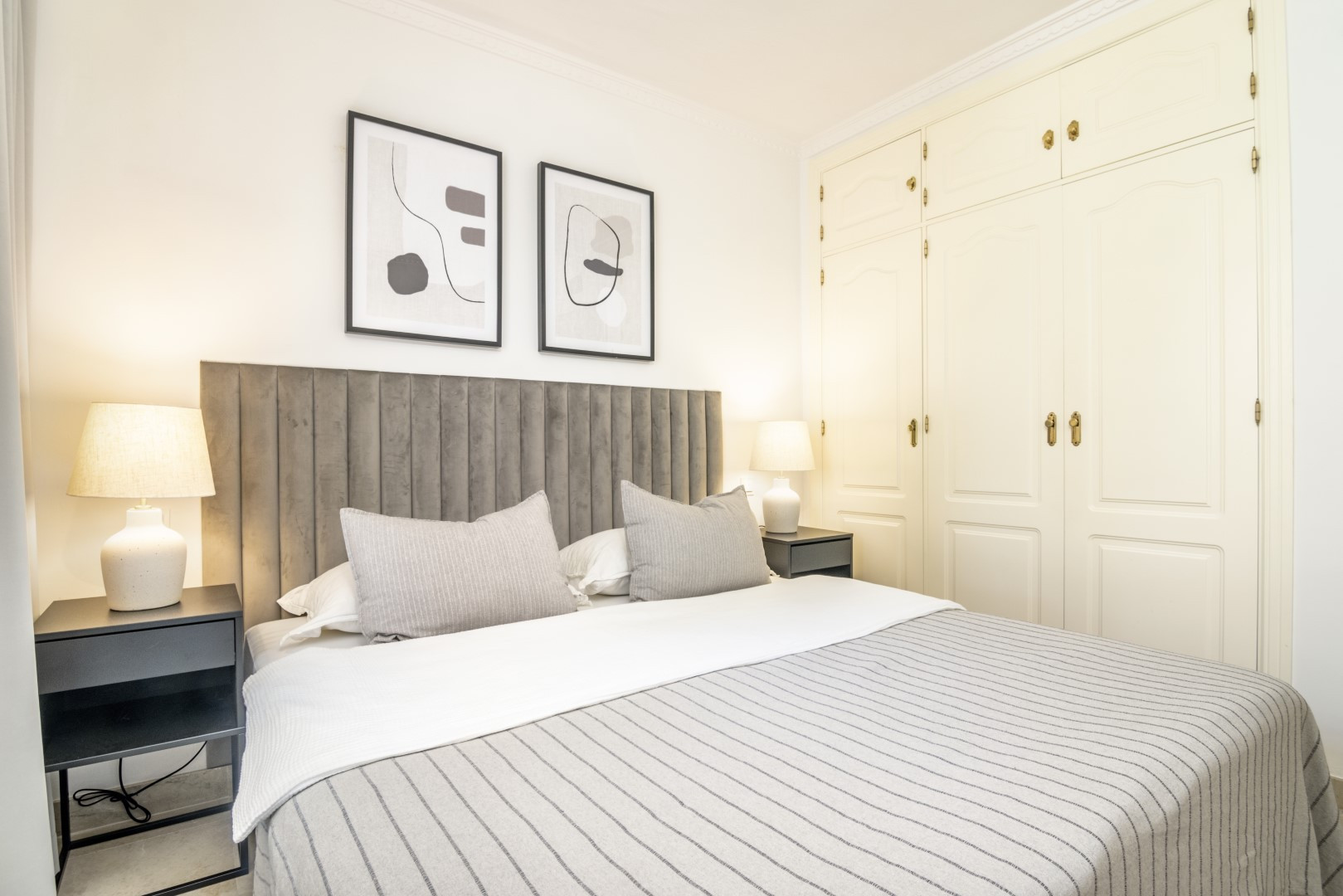 Apartamento de 2 dormitorios disponible para alquiler de vacaciones situado en la comunidad cerrada de Aloha Gardens con seguridad las 24 horas. La comunidad cuenta con hermosos jardines comunitarios y 3 piscinas, una de ellas climatizada. El apartamento está totalmente renovado, incluyendo una cocina actualizada, dos dormitorios de buen tamaño, 1 baño con hidromasaje y una cómoda sala de estar con acceso a la terraza. Gran apartamento en una excelente ubicación. La propiedad cuenta con canales de televisión españoles y también sistema de Apple TV donde también se puede utilizar Netflix.