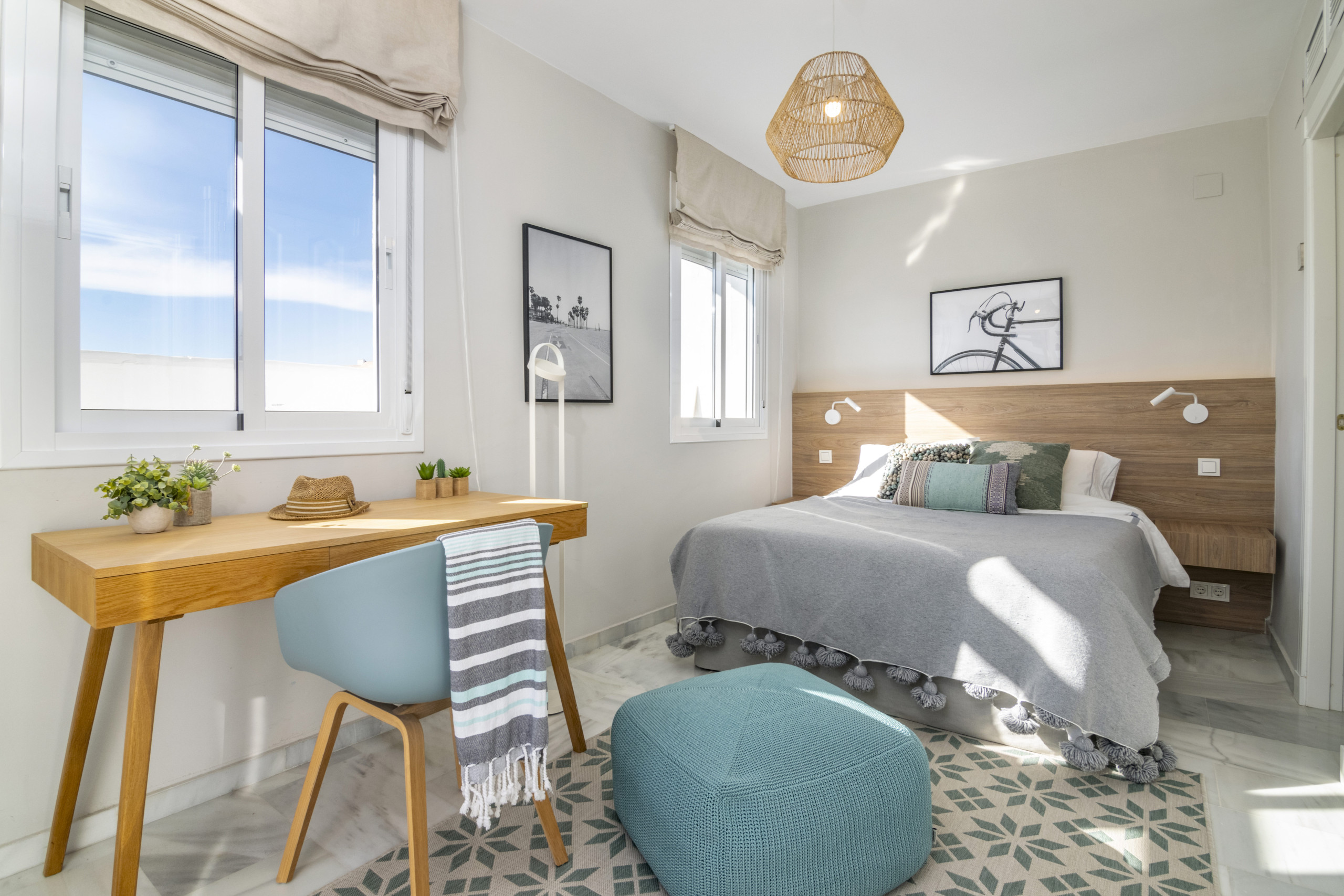 Subiendo unas escaleras se llega al dormitorio de invitados con baño en-suite y acceso directo a otra terraza. Esta terraza es ideal para relajarse en su propio pequeño oasis privado leyendo un libro tentador o simplemente disfrutando de las increíbles vistas de La Concha con una copa de vino.