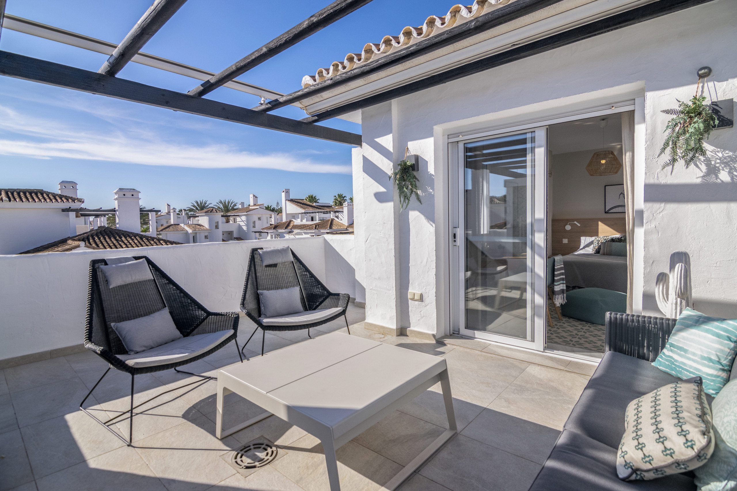 Renovado, ubicación ideal y estilo contemporáneo - ¿suena esto como marcar las casillas para sus próximas vacaciones? Permítanos presentarle este maravilloso ático en Los Naranjos de Marbella. Esta comunidad se encuentra a poca distancia de los servicios y lo que es aún mejor es que dentro de la zona comunitaria hay un gran supermercado y algunas cafeterías. Por lo tanto, nunca tendrá que ir muy lejos para tomar un café por la mañana o para hacer la compra.