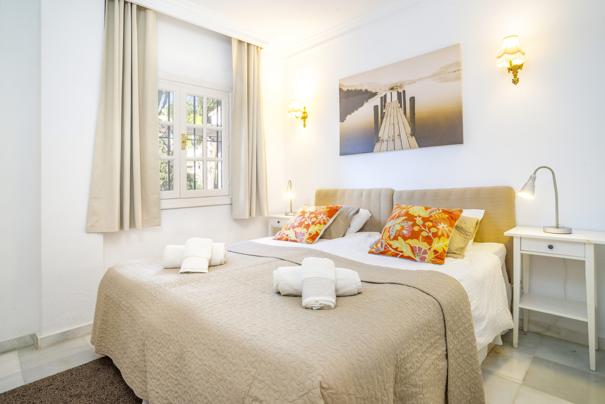 Apartamento de 2 dormitorios disponible para alquiler de vacaciones situado en la comunidad cerrada de Aloha Gardens con seguridad las 24 horas. La comunidad cuenta con hermosos jardines comunitarios y 3 piscinas, una de ellas climatizada. El apartamento está totalmente renovado, incluyendo una cocina actualizada, dos dormitorios de buen tamaño, 1 baño con hidromasaje y una cómoda sala de estar con acceso a la terraza. Gran apartamento en una excelente ubicación. La propiedad cuenta con canales de televisión españoles y también sistema de Apple TV donde también se puede utilizar Netflix.