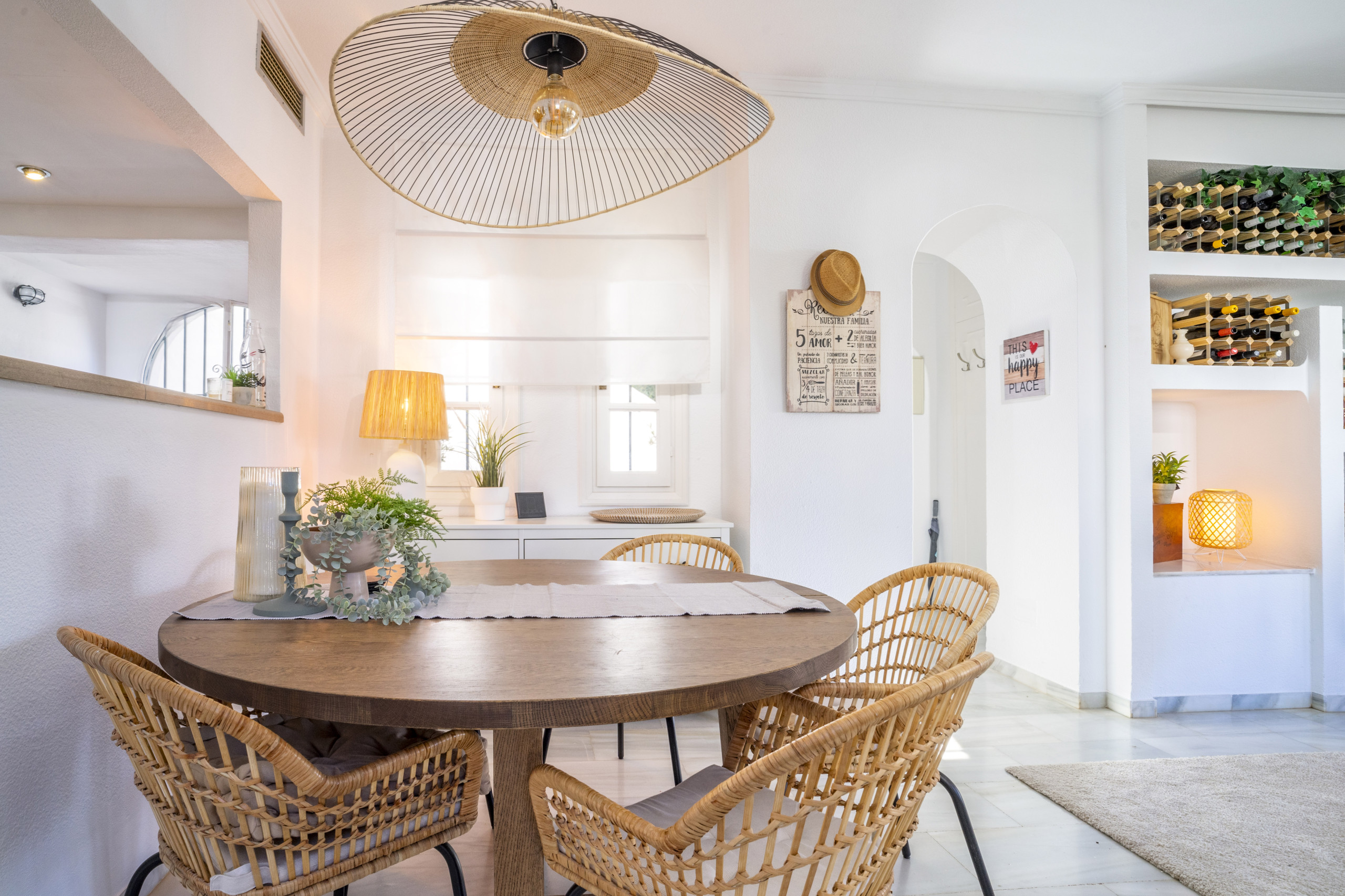 Este hermosamente diseñado apartamento de estilo escandinavo está ubicado en la muy codiciada urbanización de Aldea Blanca, ofreciendo el equilibrio perfecto entre comodidad moderna y conveniencia. Es fácil entender por qué esta ubicación es tan popular: no solo proporciona un entorno tranquilo y elegante, sino que también te sitúa a distancia de paseo de todo lo que necesitas para aprovechar al máximo tus vacaciones. Ya sea que estés antojando un delicioso bocado en un café cercano, dando un paseo tranquilo hasta Puerto Banús o explorando el animado mercado de los sábados en Centro Plaza, todo está a tu alcance.