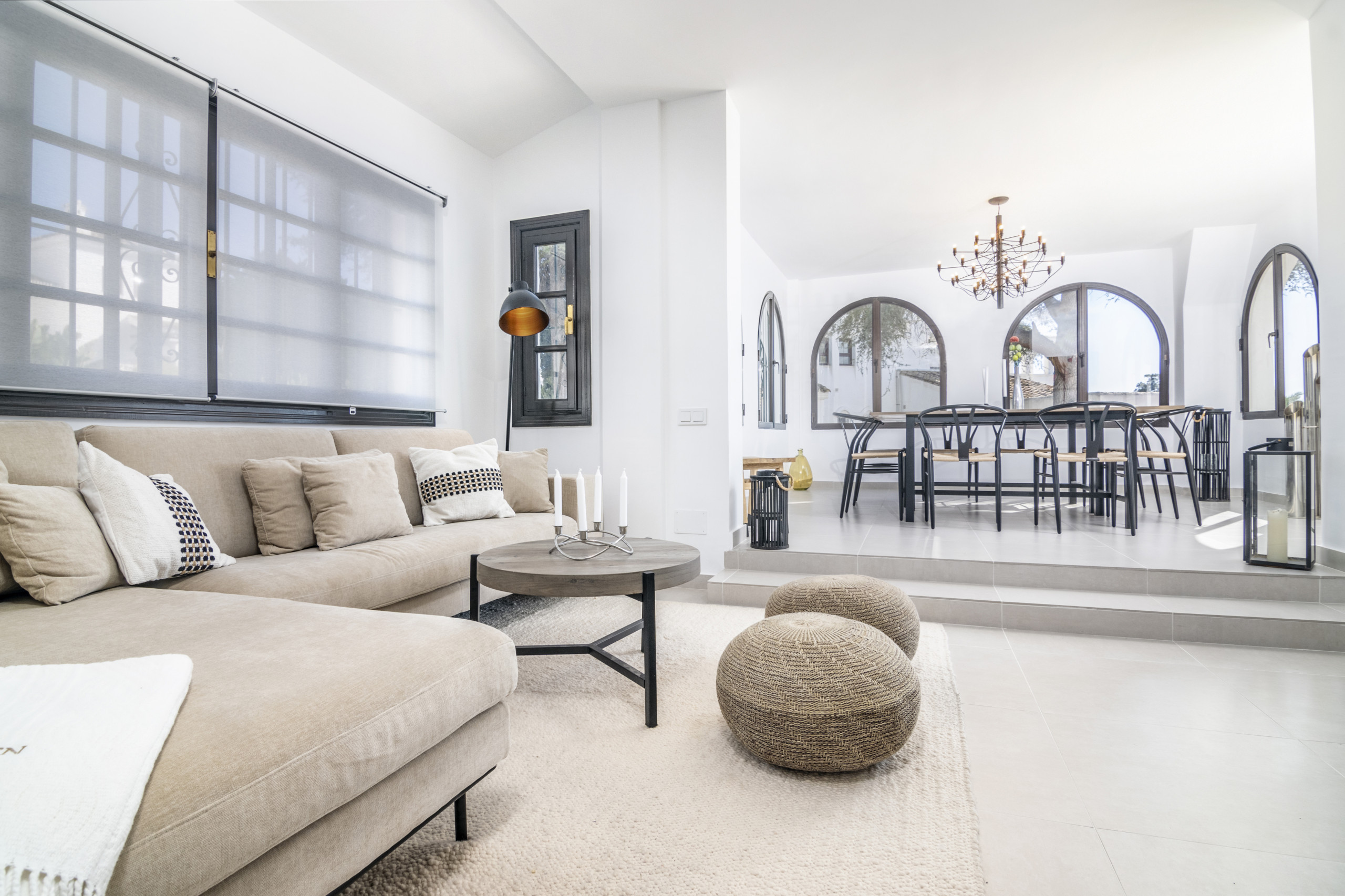 El ático cuenta con 2 dormitorios espaciosos, un sofá cama cómodo en el área de estar, y 2 baños completamente renovados, lo que lo hace ideal para hasta 6 huéspedes. El interior está inundado de luz natural, creando una atmósfera cálida y acogedora en todo el espacio. El área de estar y comedor de planta abierta fluye sin esfuerzo hacia la terraza, lo que lo hace perfecto para socializar o simplemente relajarse después de un día explorando Marbella.