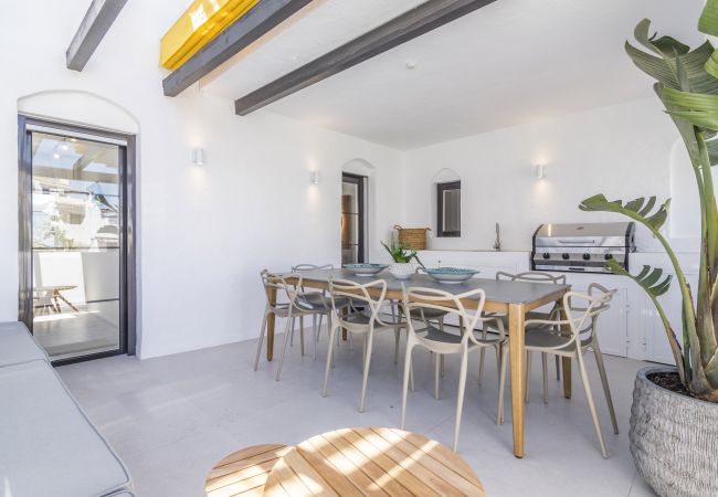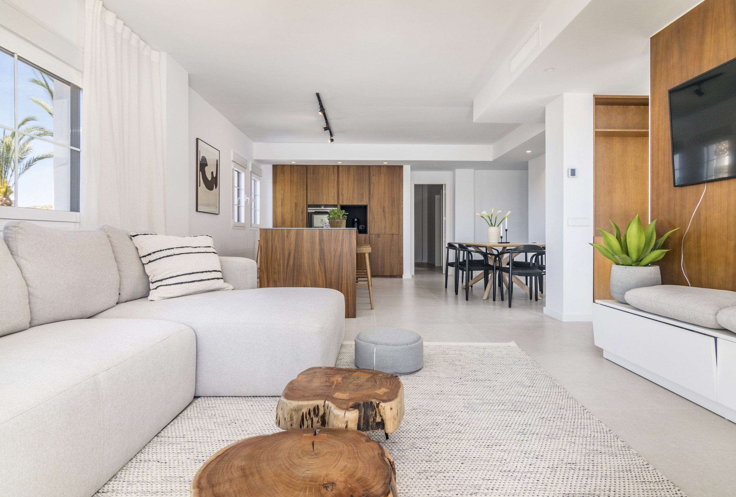El ático cuenta con 2 dormitorios espaciosos, un sofá cama cómodo en el área de estar, y 2 baños completamente renovados, lo que lo hace ideal para hasta 6 huéspedes. El interior está inundado de luz natural, creando una atmósfera cálida y acogedora en todo el espacio. El área de estar y comedor de planta abierta fluye sin esfuerzo hacia la terraza, lo que lo hace perfecto para socializar o simplemente relajarse después de un día explorando Marbella.