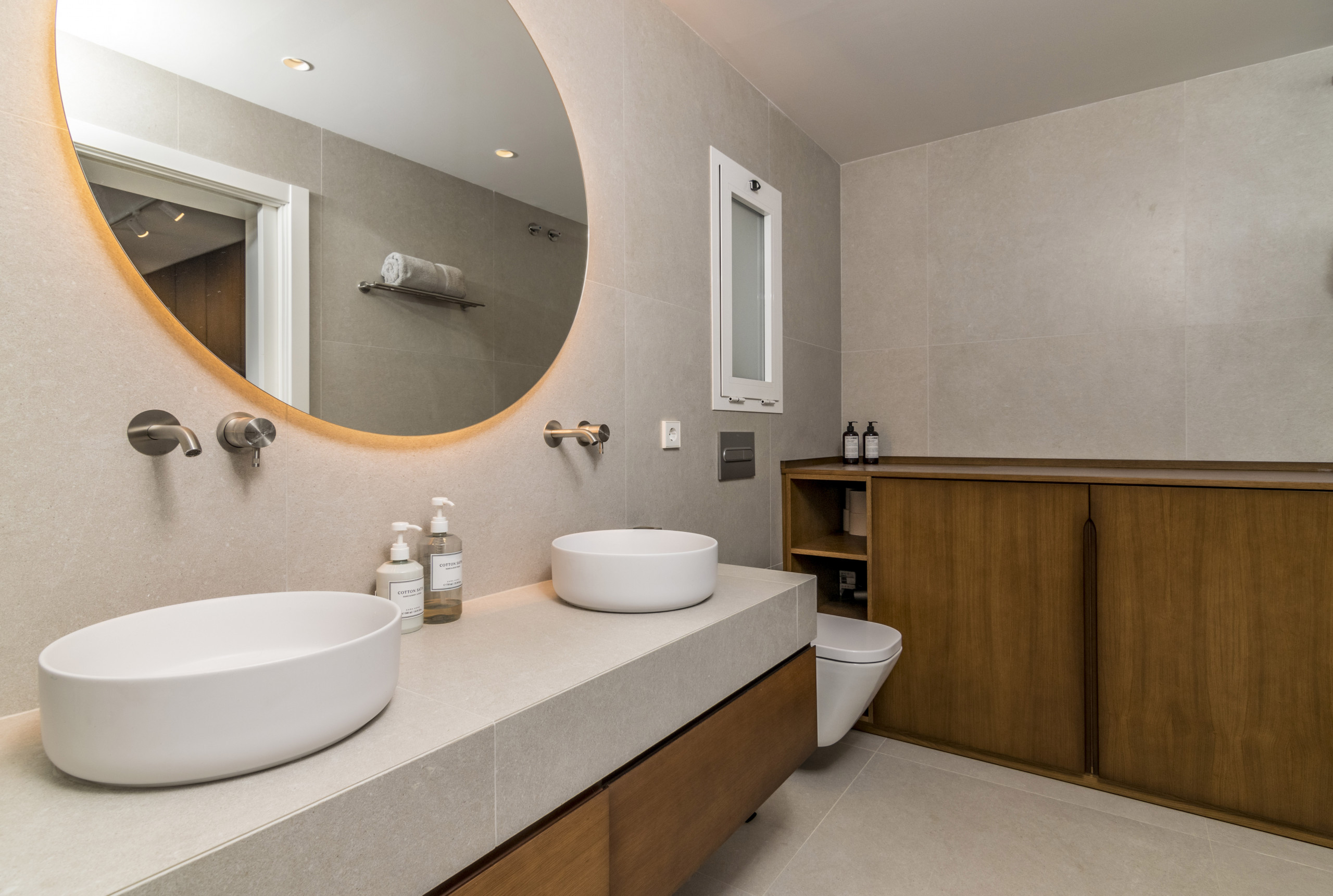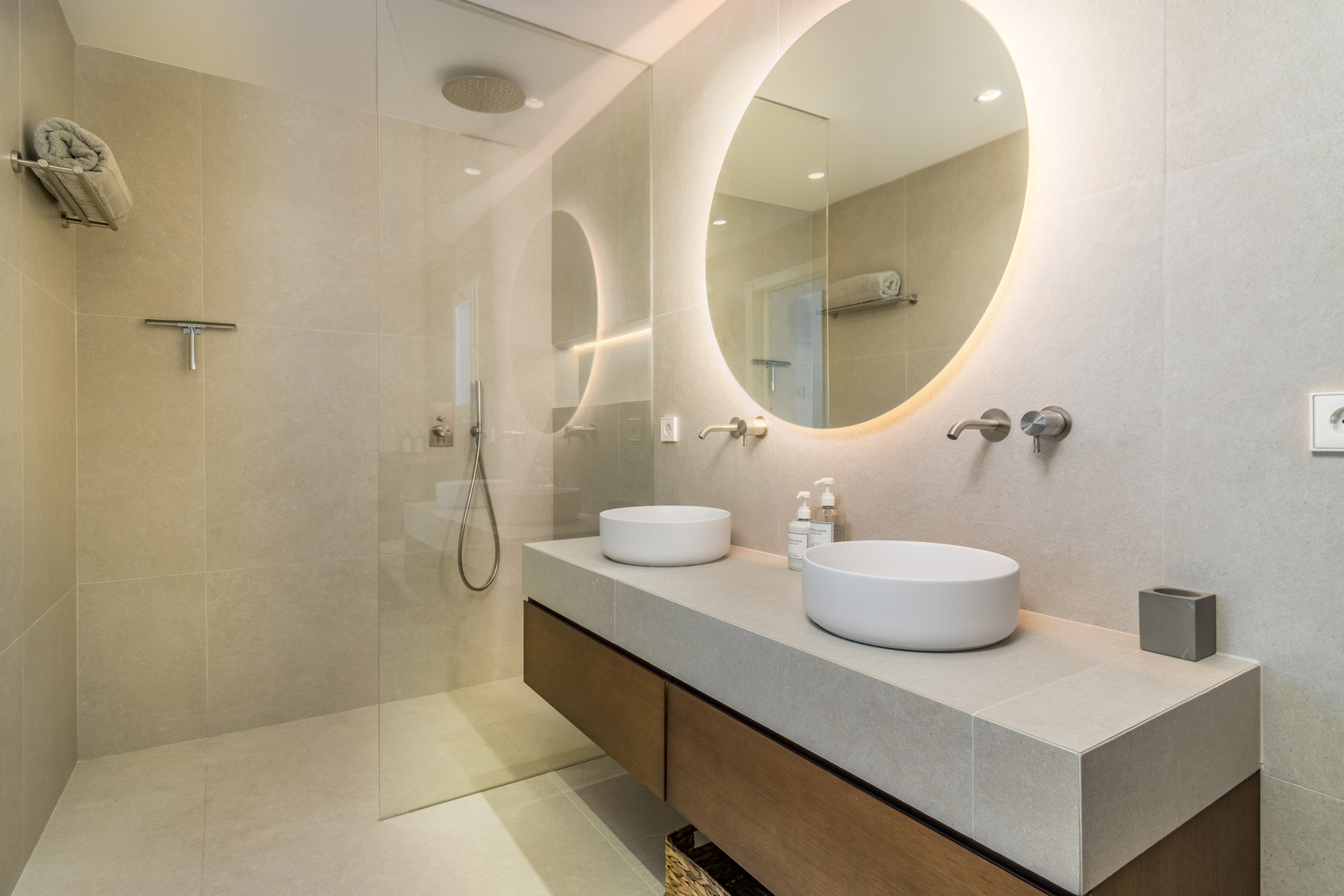 El dormitorio principal tiene un baño de buen tamaño con ducha.