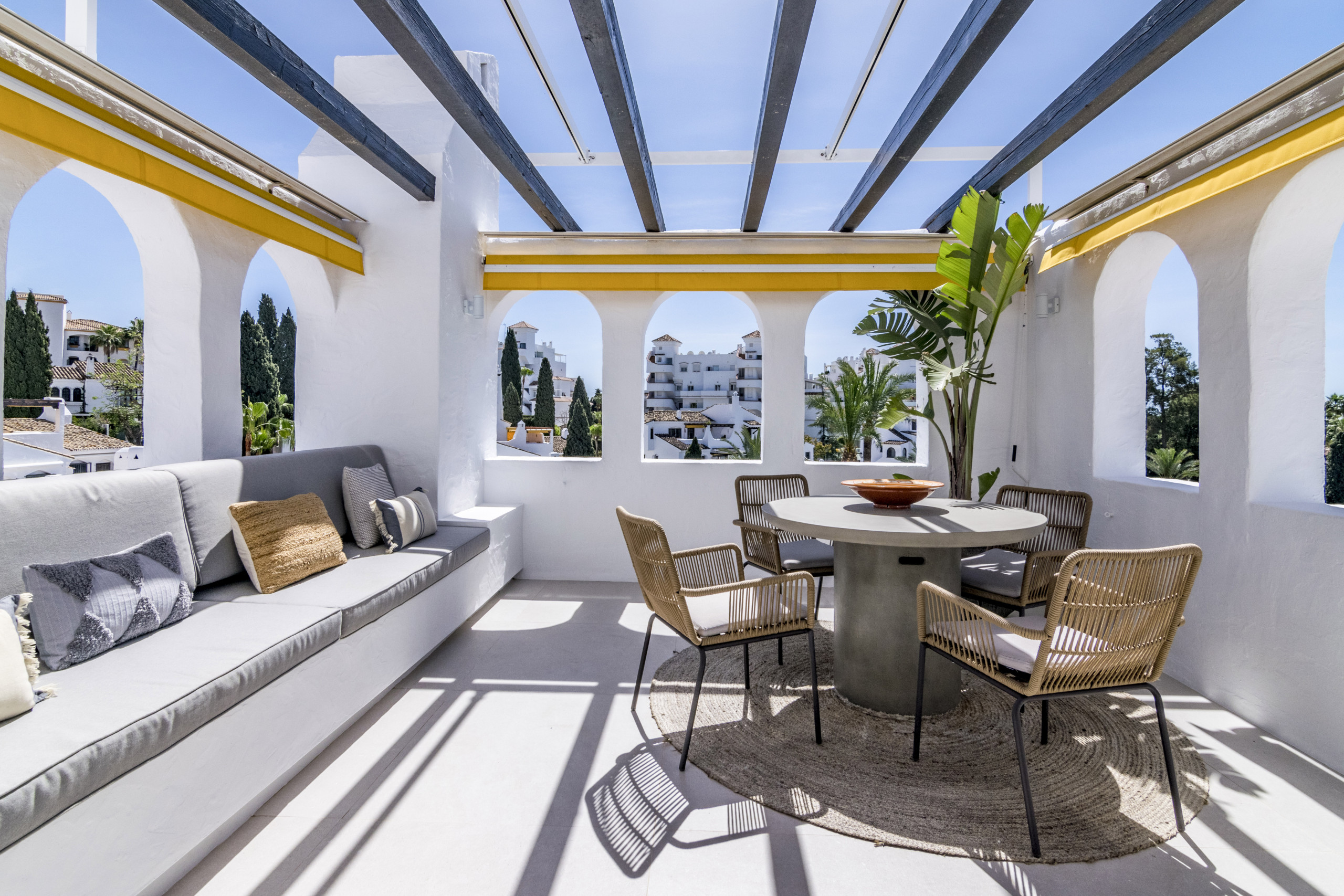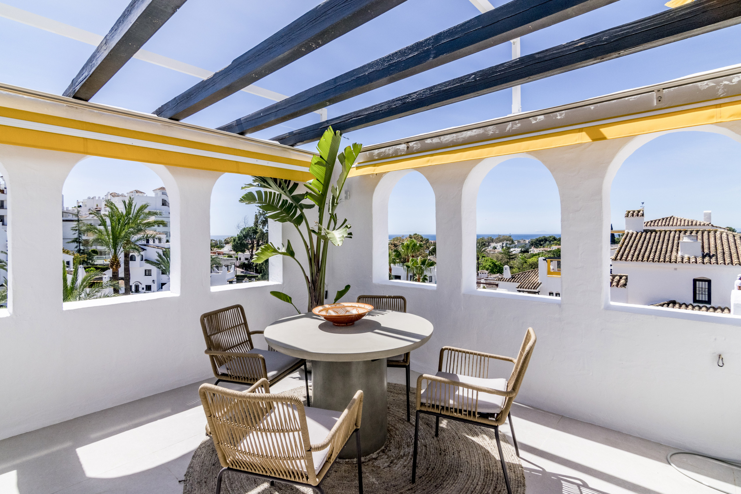 Adéntrate en este luminoso y acogedor ático dúplex, perfectamente ubicado en Señorio de Aloha. Idealmente situado a solo un corto paseo del vibrante Centro Plaza y todas las comodidades locales, esta propiedad ofrece la combinación perfecta de confort, estilo y conveniencia para tu estancia en Marbella.