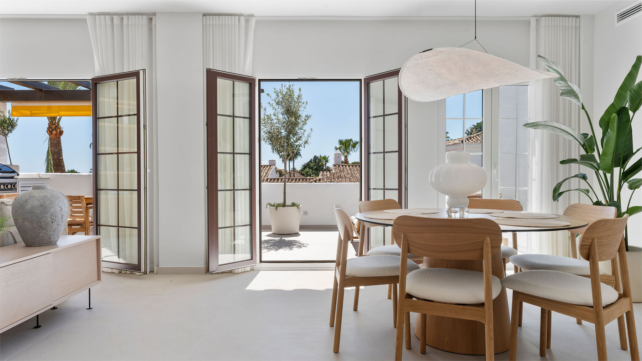 Equipada con electrodomésticos de alta gama, la cocina es tanto una delicia para los chefs como un centro social. Tres puertas dobles se abren a una generosa terraza orientada al suroeste, proporcionando un lugar idílico para relajarse y contemplar la puesta de sol.