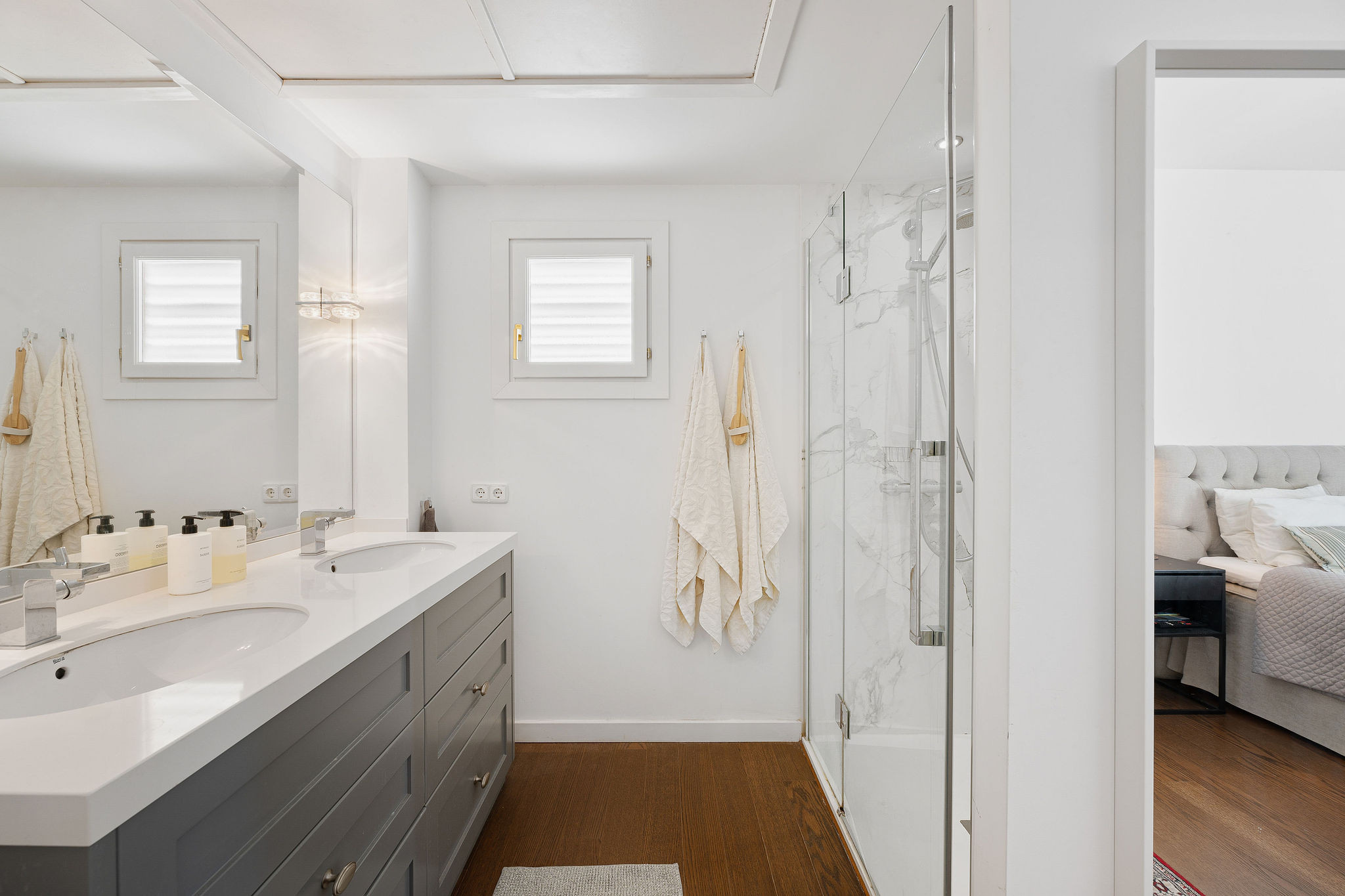 Pero lo mejor está por llegar. Sube las escaleras y descubre la terraza de la azotea, un espectáculo diseñado para la máxima relajación y entretenimiento. Aquí encontrarás un jacuzzi, una elegante zona de estar, una mesa de comedor para diez personas y una zona de barbacoa, proporcionando el escenario perfecto para disfrutar del estilo de vida mediterráneo.