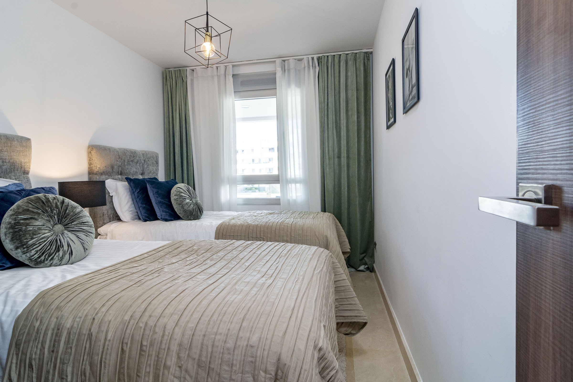 El apartamento cuenta con tres dormitorios decorados con buen gusto, cada uno diseñado pensando en la comodidad y el descanso. Tonos suaves, ropa de cama de calidad y detalles cuidadosos hacen que cada habitación se sienta como su propio santuario privado.