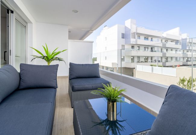 Esta es una unidad de 3 dormitorios. En el interior se entra en un hall de entrada, a la derecha tiene los 3 dormitorios. Dos dormitorios comparten un baño moderno y el dormitorio principal tiene un baño en-suite con acceso directo a la terraza. Justo delante de la entrada tiene la cocina abierta con electrodomésticos totalmente equipados y la sala de estar. Acceso directo a la increíble terraza con comedor al aire libre y zona de estar. ¡Gran espacio para disfrutar de una cena de barbacoa durante sus vacaciones!