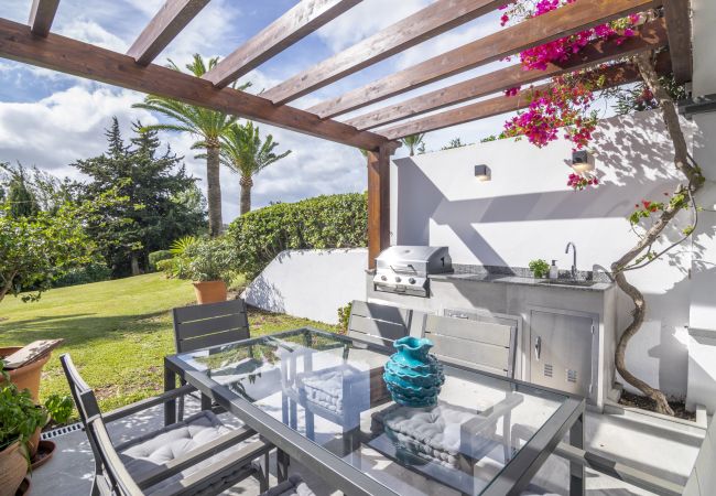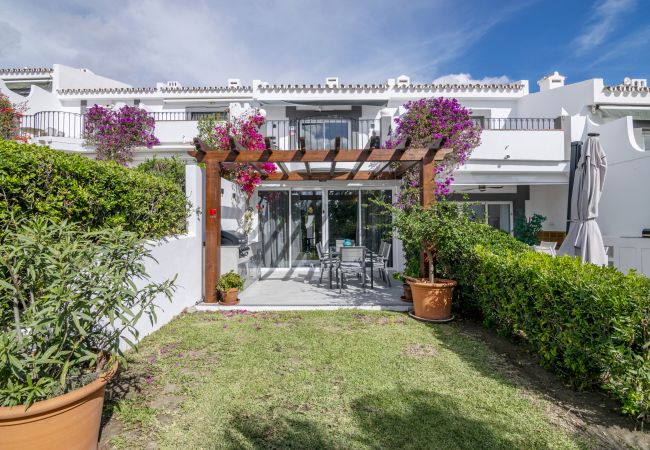 Estupendo Adosado en Nueva Andalucía, cerca del Club de Golf Aloha, disponible para alquiler vacacional. Totalmente reformada, de estilo moderno y junto a campos de golf - estos son los términos que mejor describen esta maravillosa propiedad. Si usted es un amante del golf, no podría estar mejor situado ya que esta urbanización tiene vistas a los hermosos greens del Campo de Golf Aloha. La base perfecta para sus vacaciones, ya que está a sólo unos minutos de todos los servicios, pero escondido en su propio pequeño oasis.