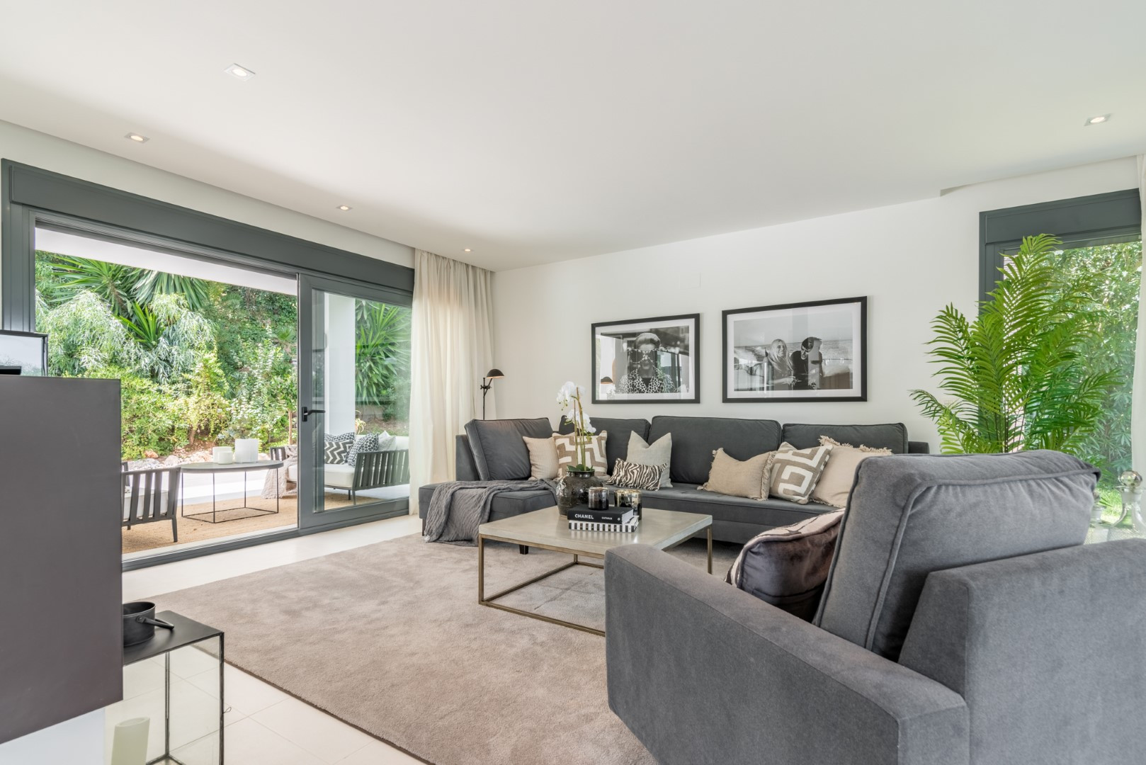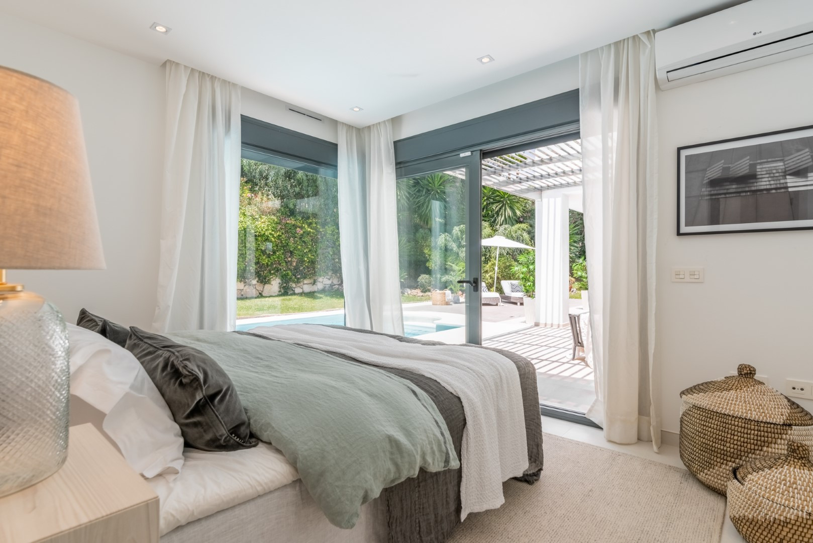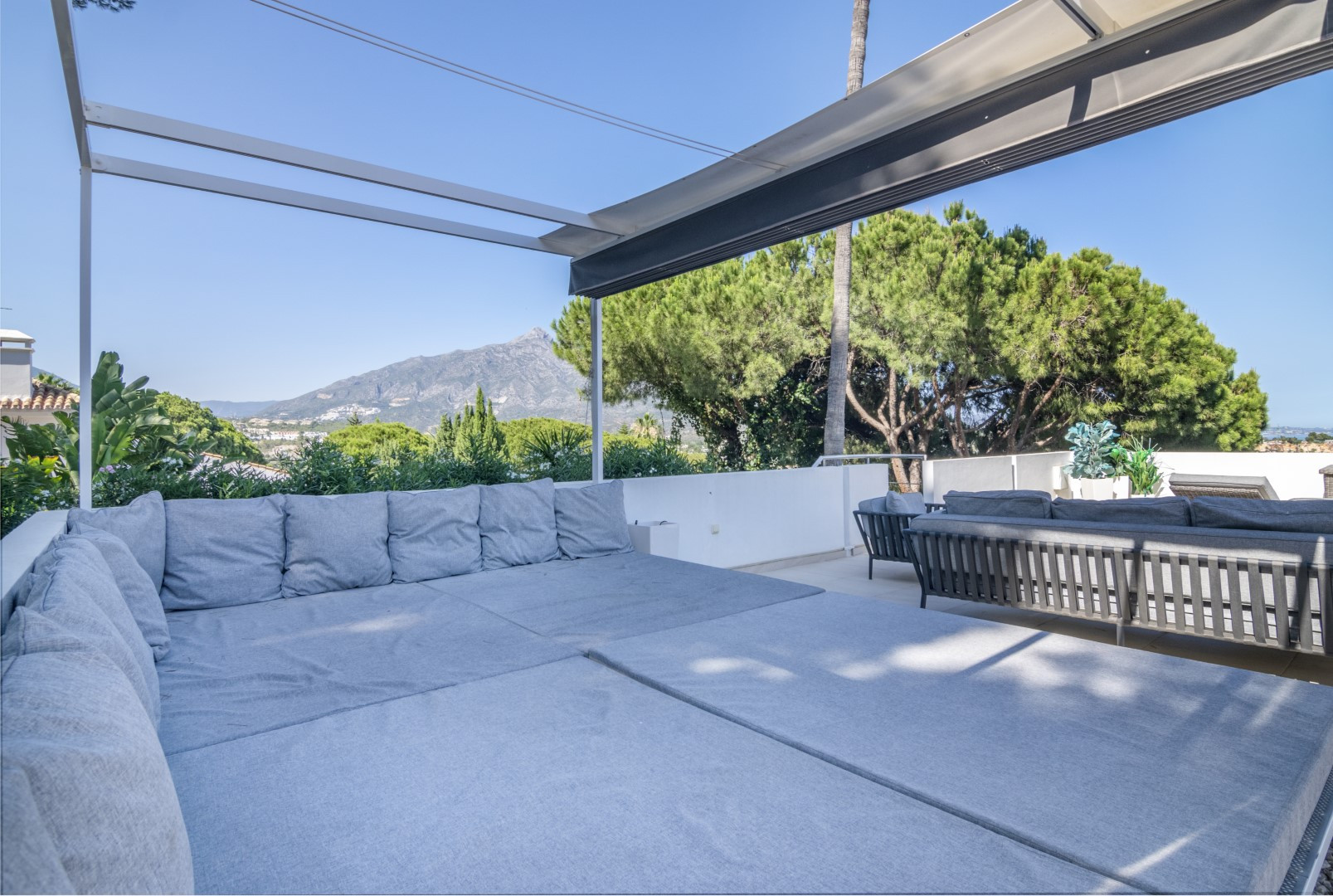 Reformada con los más altos estándares, la propiedad ha sido diseñada a medida para crear un hogar contemporáneo de lujo. Esta villa está convenientemente distribuida en un solo nivel para un fácil acceso (solo algunos escalones en la entrada). Ofrece mucha luz e impresionantes vistas de la montaña La Concha y el campo de golf Las Brisas. Al entrar, encontrará un aseo de invitados a la izquierda. En el lado derecho hay un dormitorio doble con baño en suite. A la izquierda de la entrada encontrará tres dormitorios adicionales. Dos de ellos comparten un baño (un dormitorio con camas individuales y otro con cama doble). El dormitorio principal es espacioso, presentado con buen gusto y ofrece impresionantes vistas con un baño en suite. Directamente al fondo de la entrada se encuentra la zona de planta abierta que comprende salón, cocina moderna con electrodomésticos Miele/Neff y zona de comedor. Grandes puertas corredizas de vidrio de seguridad en el salón y comedor conducen a un fantástico espacio de terraza con zona de comedor y estar al aire libre. ¡No podría haber un mejor lugar para disfrutar al máximo de sus vacaciones con sus seres queridos! Unos escalones más abajo conducen al jardín, zona de barbacoa y la reconocible piscina. Los jardines paisajísticos tienen un sistema de riego automático instalado y están bellamente iluminados por la noche.