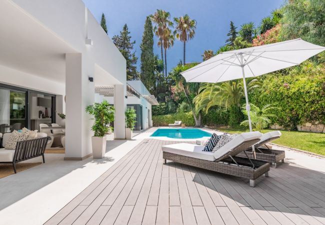Esta villa vacacional cumple con todas tus expectativas! Interior moderno, completamente renovada y ubicación ideal en el corazón de Nueva Andalucía.