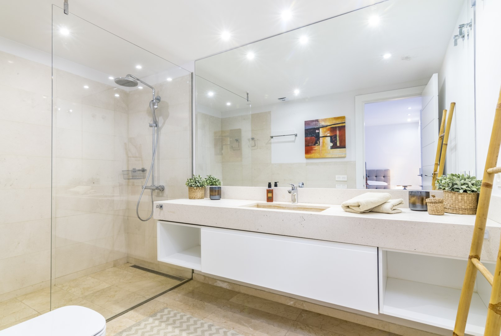Dormitorio doble con baño en suite, convenientemente ubicado en el nivel de entrada