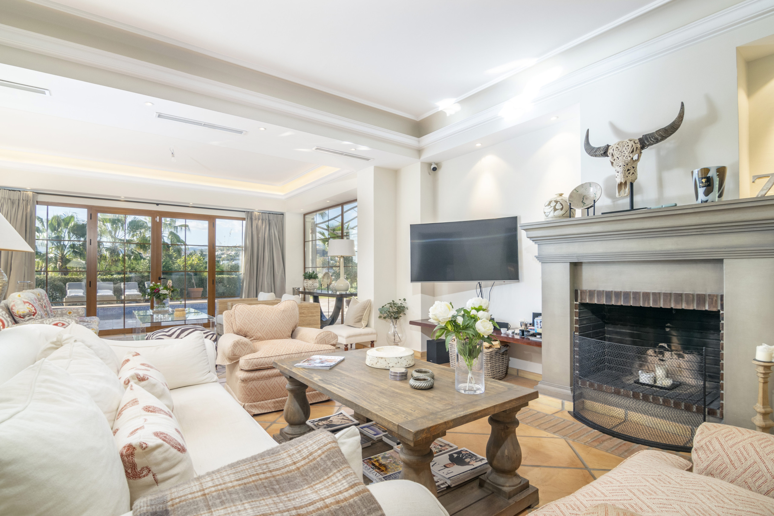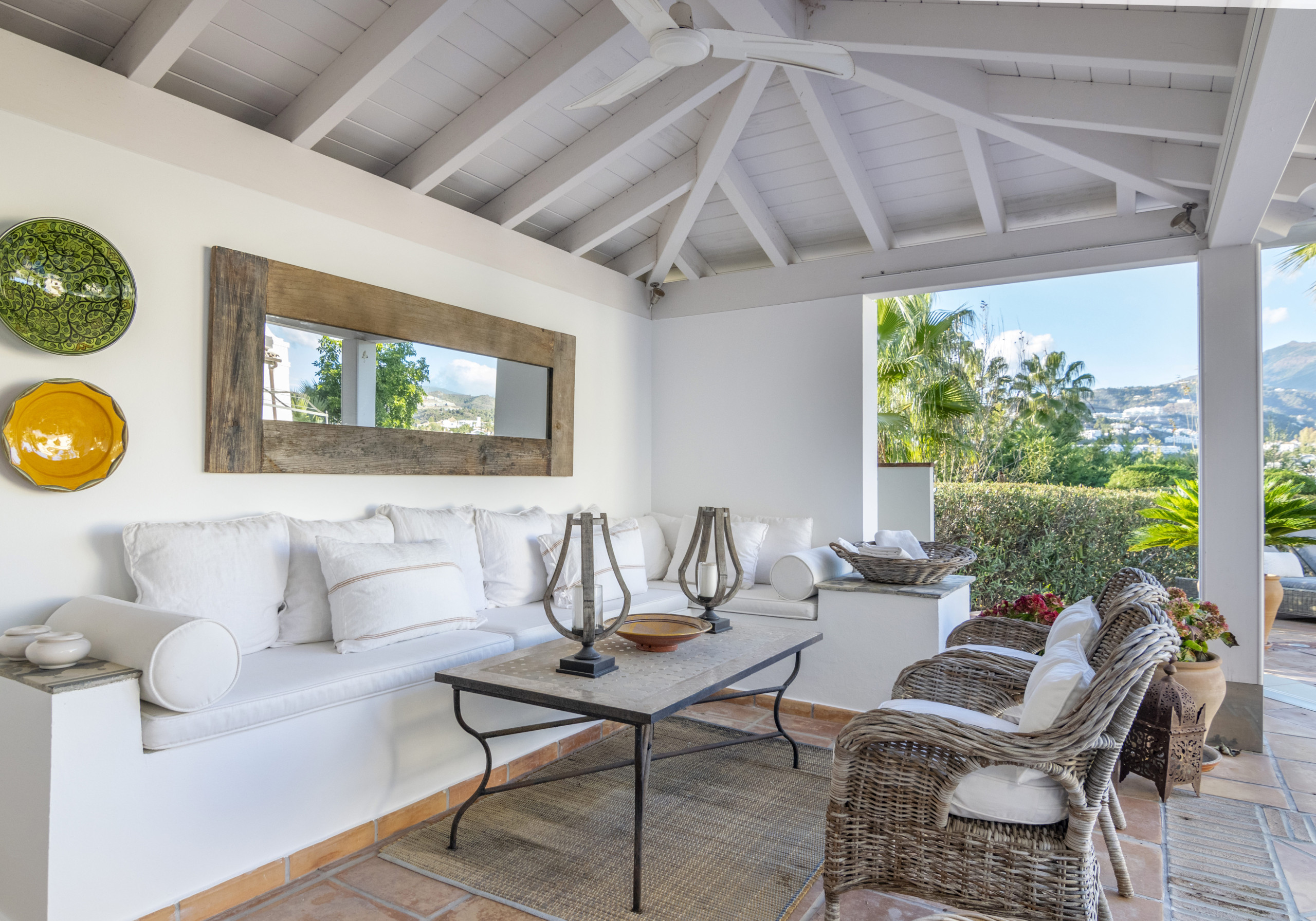 La vida al aire libre es igualmente espectacular: una mesa de comedor larga para 14 invitados, una piscina reluciente, un cenador sombreado para relajarse y un área de estar cómoda para días perezosos y soleados. Cada rincón de Villa Las Brisas ha sido diseñado para combinar estilo, comodidad y el estilo de vida mediterráneo definitivo.