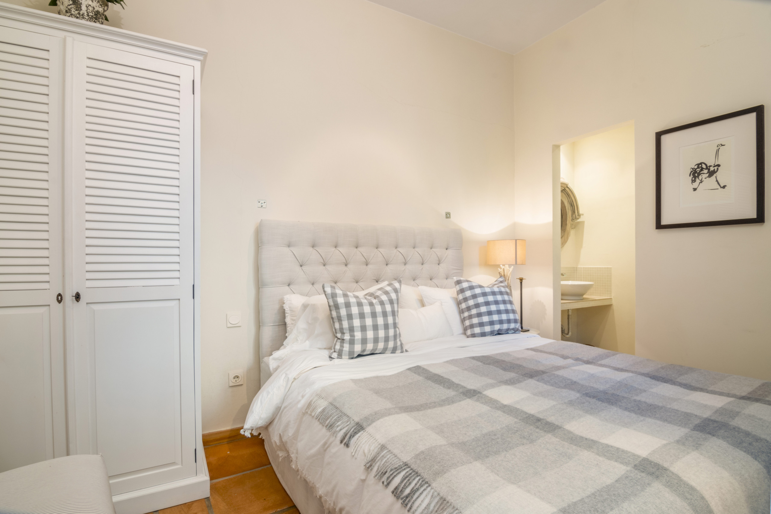 Dormitorio principal con baño en suite y acceso a un balcón privado