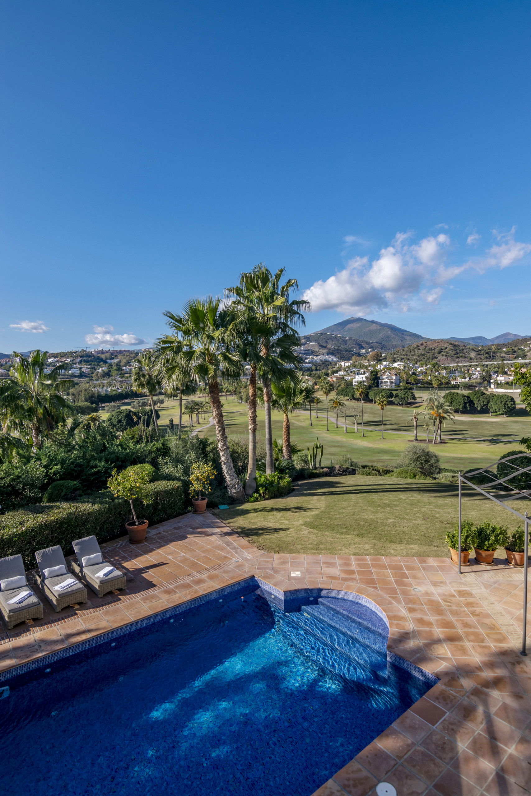 Una fantástica villa de alquiler familiar situada en un lugar privilegiado cerca del Club de Golf Los Naranjos. Por lo tanto, si usted es un amante del golf, no puede estar en mejor posición. A la vuelta de la esquina tiene Los Naranjos Golf Club con una popular casa club y restaurante. Una verdadera joya del golf en la zona de Nueva Andalucía. Un lugar perfecto para ir andando y desayunar por la mañana disfrutando de las bonitas vistas al golf. Dentro de un corto trayecto en coche se puede llegar a todos los servicios que pueda necesitar durante sus vacaciones. Esto incluye restaurantes, tiendas, supermercados, playas, gimnasios y mucho más. La ubicación perfecta en Nueva Andalucía para estar cerca de los servicios, mientras que todavía escondido para disfrutar de un poco de tranquilidad.
