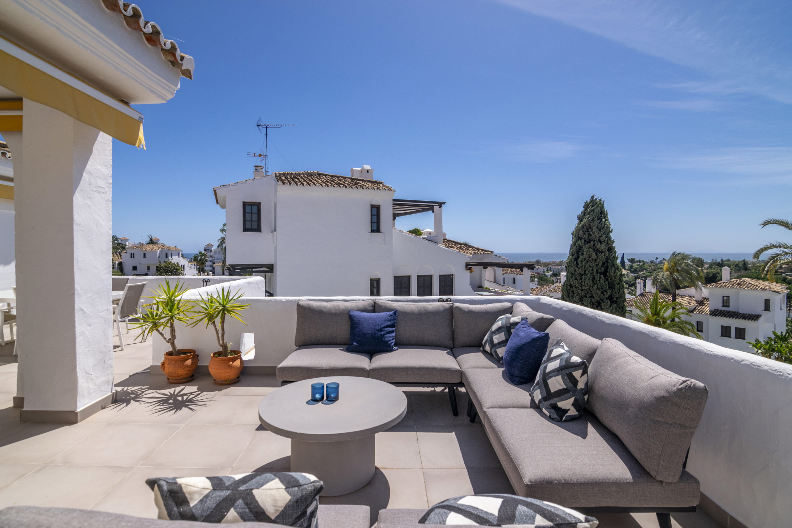 Appartement de 2 chambres à louer pour les vacances, situé dans la communauté fermée d'Aloha Gardens, sécurisée 24 heures sur 24. La communauté dispose de magnifiques jardins communs et de 3 piscines, dont l'une est chauffée. L'appartement est entièrement rénové et comprend une cuisine moderne, deux chambres de bonne taille, une salle de bains avec hydromassage et un salon confortable avec accès à la terrasse. Superbe appartement dans un excellent emplacement. La propriété dispose de chaînes de télévision espagnoles et d'un système Apple TV qui permet d'utiliser Netflix.